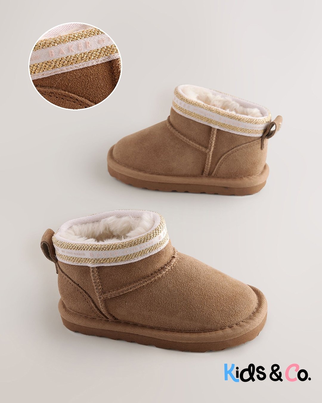 Keep her feet warm and stylish through the colder months with the Baker by Ted Baker Girls Cosy Suede Branded Tape Slipper Boots. These delightful slipper boots feature a luxurious suede upper, providing a soft and premium feel. Adding a touch of Ted Baker’s signature flair, branded gold metallised fibre thread tape details elegantly wrap around the cuff of the boot. Inside, a plush faux fur lining ensures ultimate cosiness and comfort, making them perfect for snuggling up. Designed to be both cosy and comfortable, these slipper boots are an ideal choice for the winter months. Suede upper Tape detail Faux fur lining Cosy and comfy Upper – Leather, Lining and Sock – Textile, Sole – Other Materials.