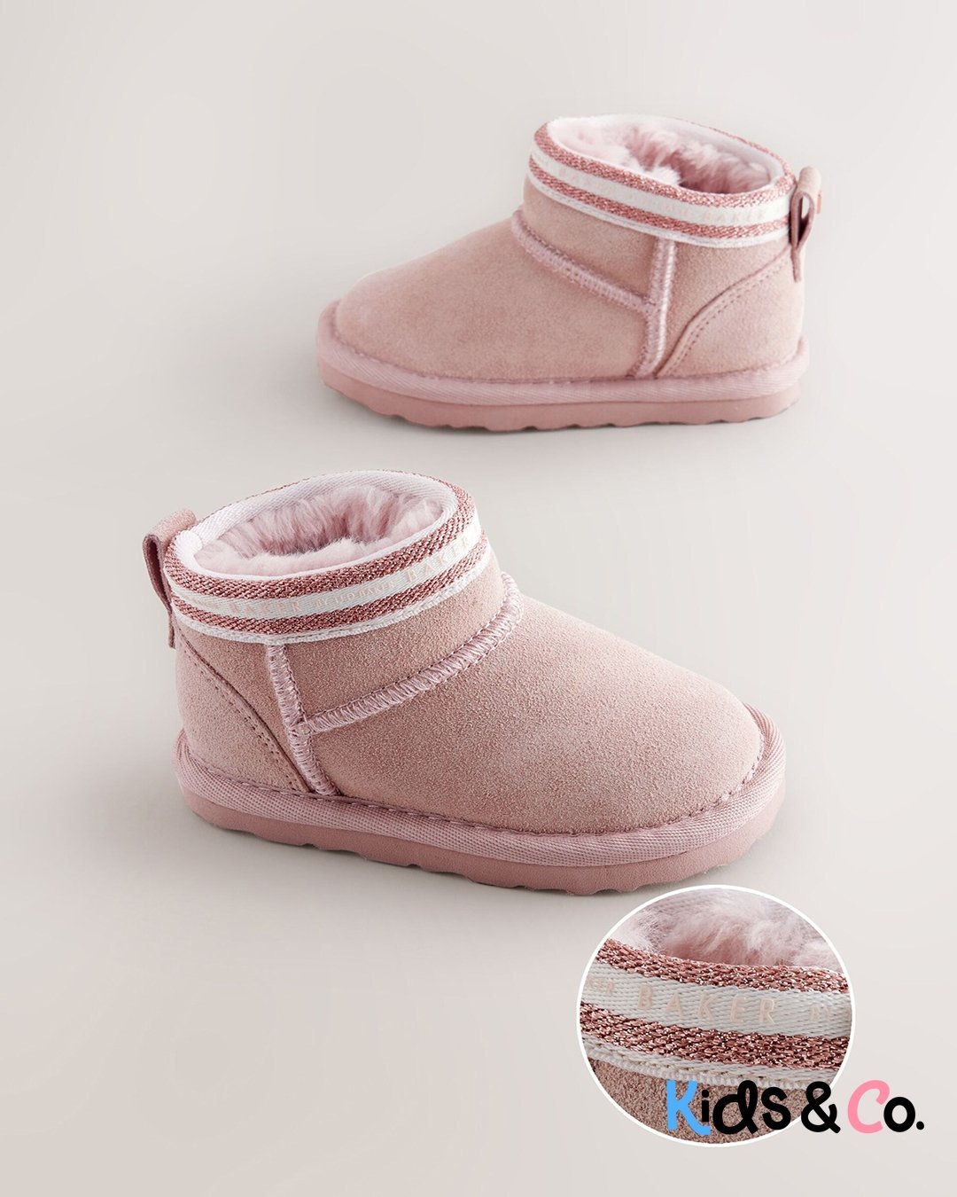 Baker by Ted Baker Girls Cosy Suede Branded Tape Slipper Boots