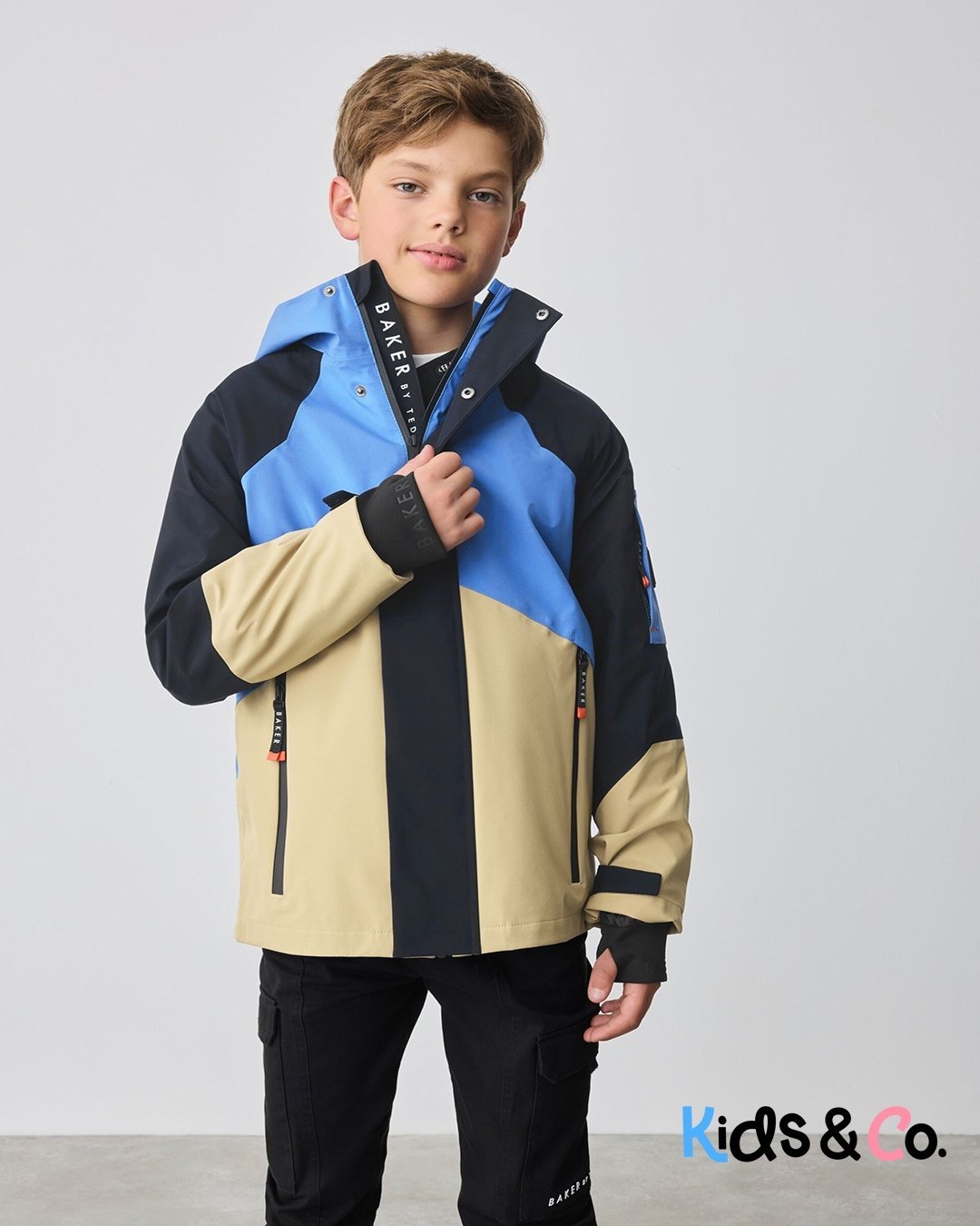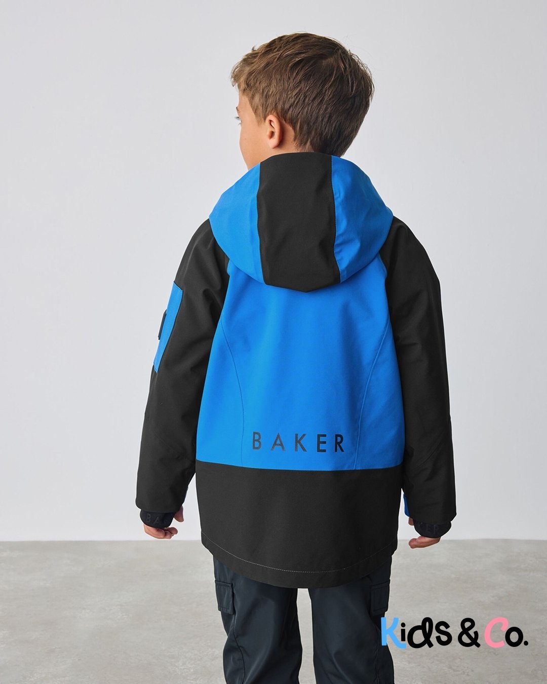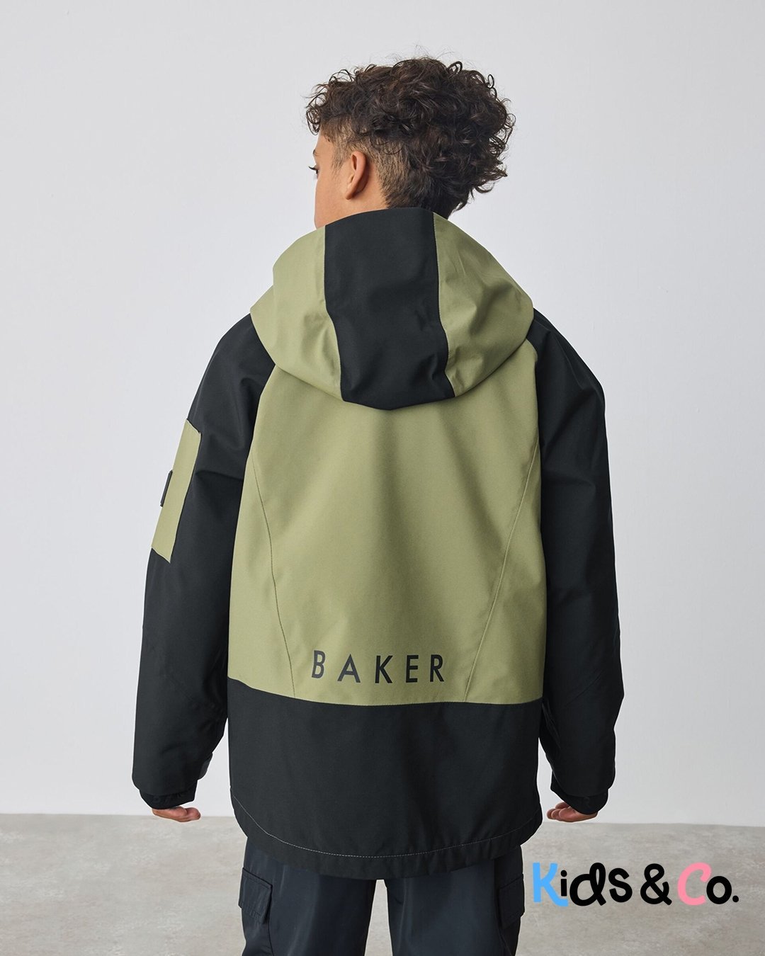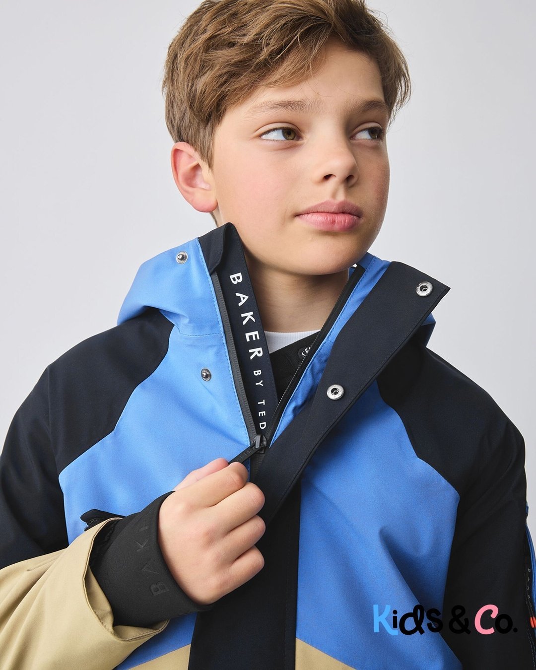 He can brave unpredictable weather in signature style with the Baker by Ted Baker Shower Resistant Colourblock Coat. This striking colourblock parka is designed to be both shower resistant and durable, making it an essential layer for any adventure.It features practical branded storm cuffs to keep out the elements and a secure inner pocket with zip for valuables.Adding to its distinct look, a bold BAKER print runs down the front of the coat, complemented by a branded inner zipper placket. An arm pocket with a branded zip puller and a coordinating branded badge on the arm pocket offer extra utility and style. The coat is finished with side pockets featuring branded zip pullers, adjustable branded self-fastening cuff tabs for a custom fit, and prominent Baker branding on the back of the parka, ensuring a statement-making piece that blends functionality with Ted Baker’s unique aesthetic.