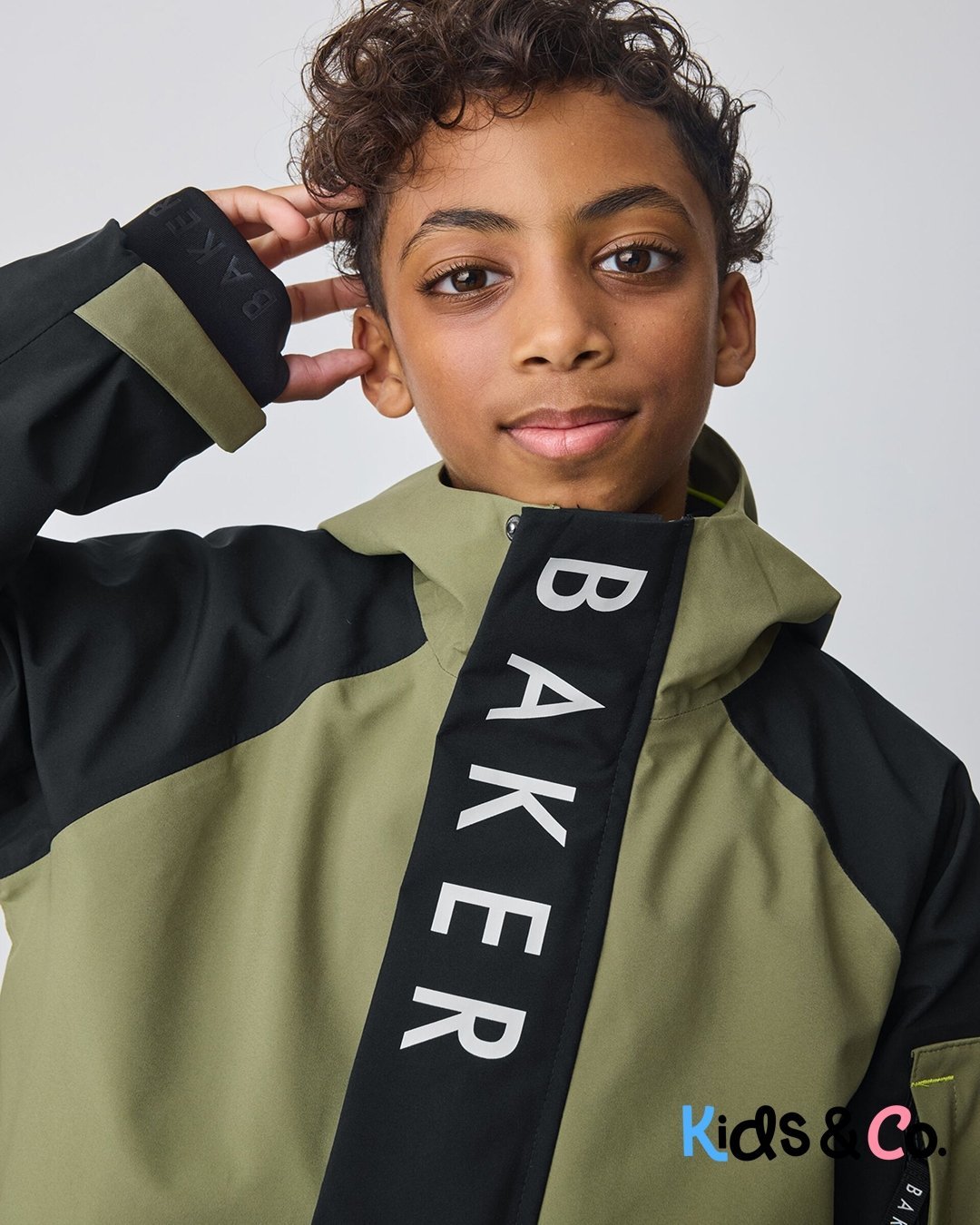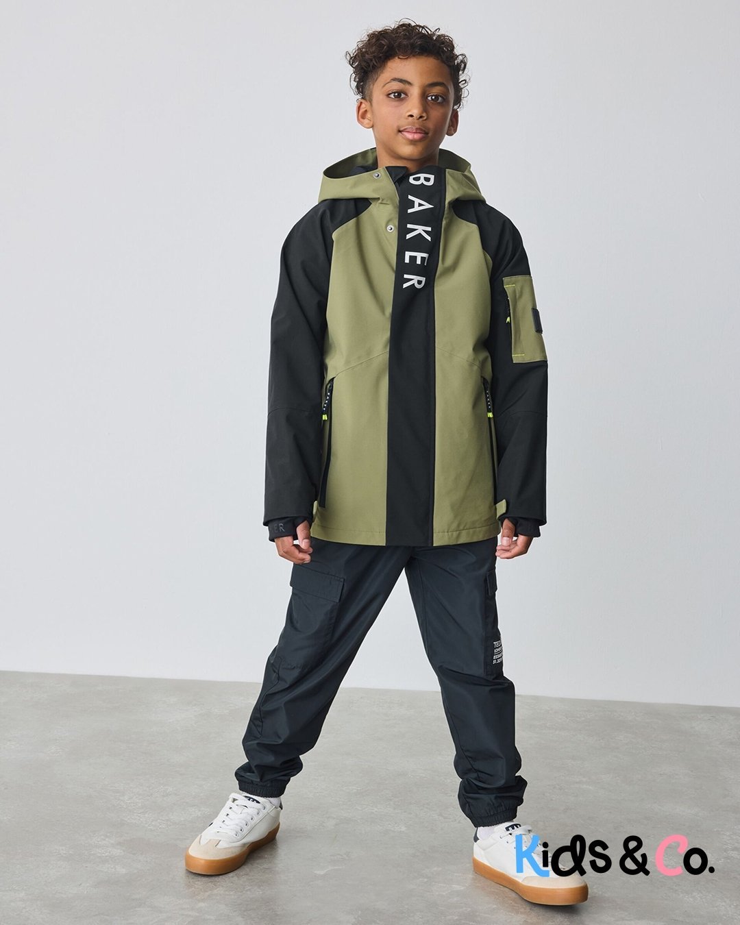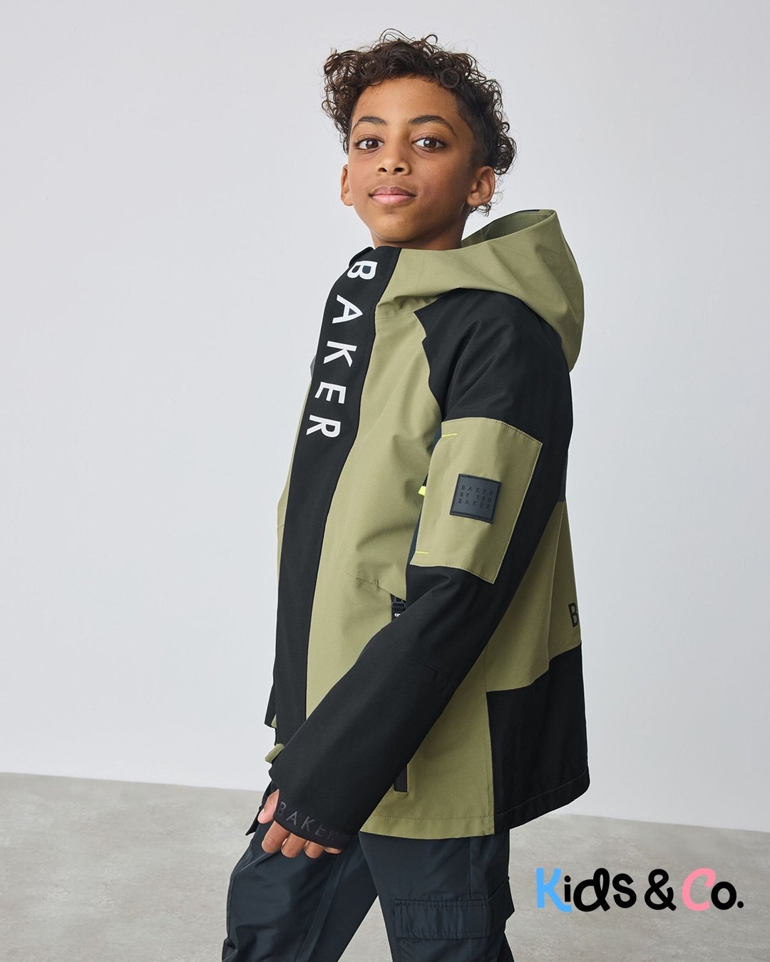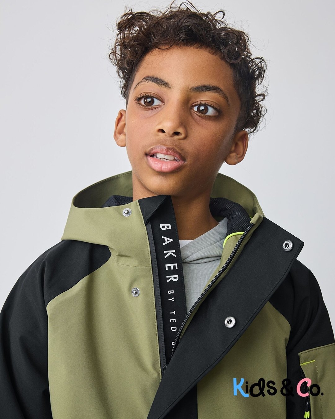 He can brave unpredictable weather in signature style with the Baker by Ted Baker Shower Resistant Colourblock Coat. This striking colourblock parka is designed to be both shower resistant and durable, making it an essential layer for any adventure.It features practical branded storm cuffs to keep out the elements and a secure inner pocket with zip for valuables.Adding to its distinct look, a bold BAKER print runs down the front of the coat, complemented by a branded inner zipper placket. An arm pocket with a branded zip puller and a coordinating branded badge on the arm pocket offer extra utility and style. The coat is finished with side pockets featuring branded zip pullers, adjustable branded self-fastening cuff tabs for a custom fit, and prominent Baker branding on the back of the parka, ensuring a statement-making piece that blends functionality with Ted Baker’s unique aesthetic.