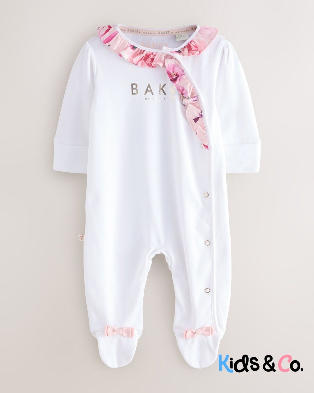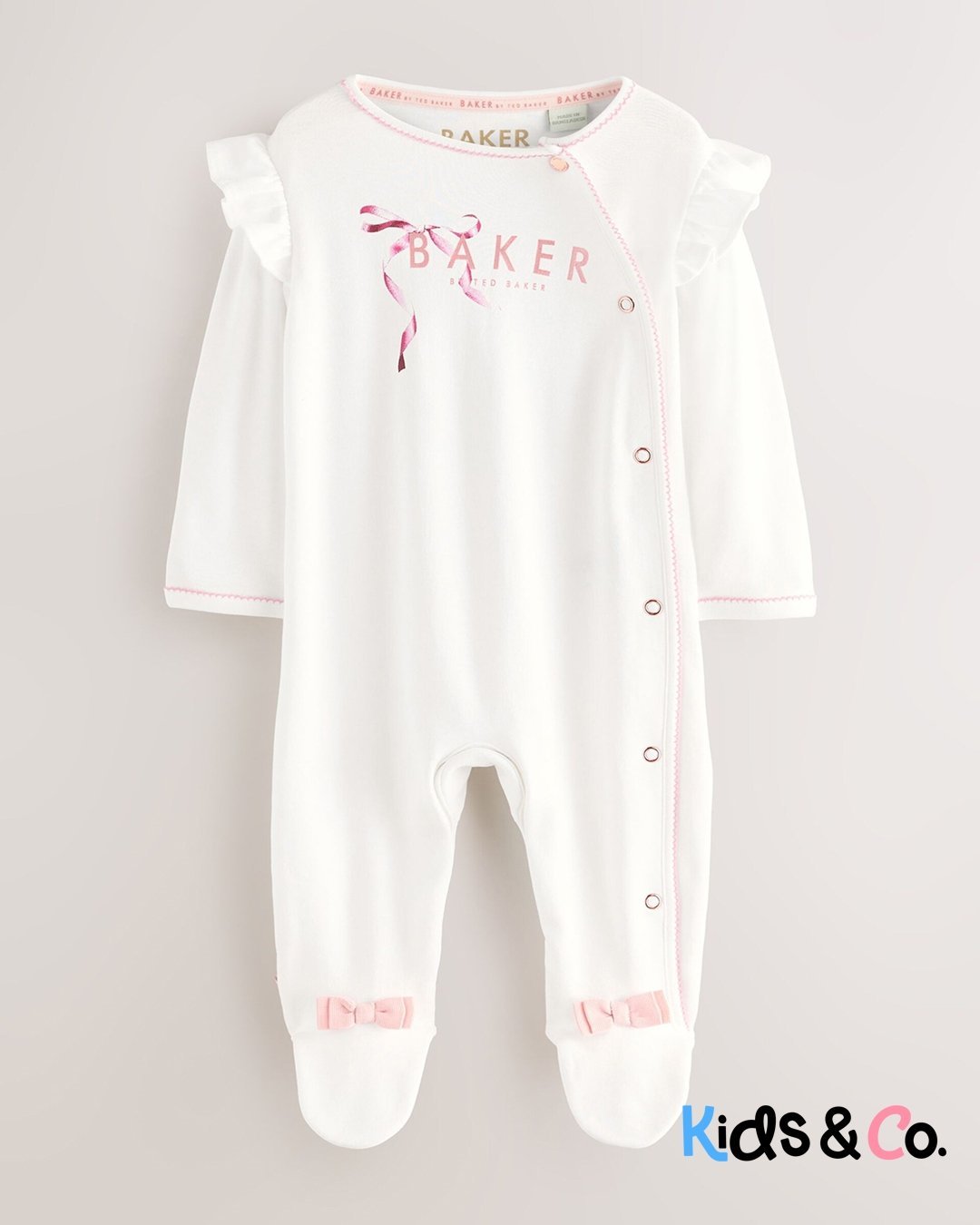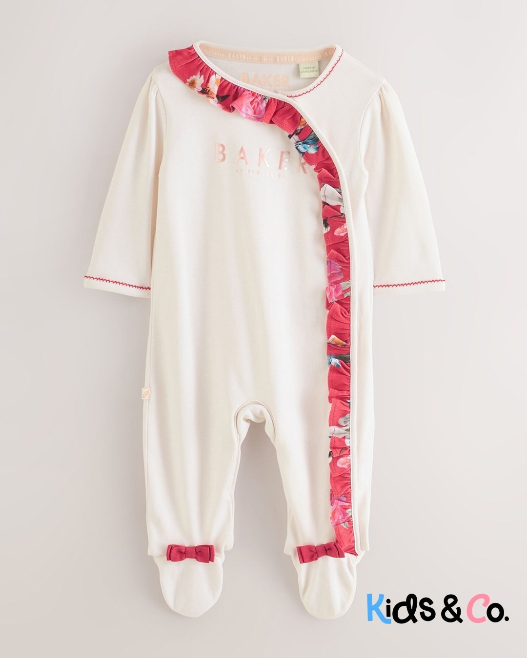 These adorable sleepsuits from Baker by Ted Baker will keep your little one looking and feeling great. The pack contains three sleepsuits all crafted in soft cotton with the iconic branding printed across the chest and pink bow details on the feet. They are also designed with popper fastenings between the legs to help at changing times.