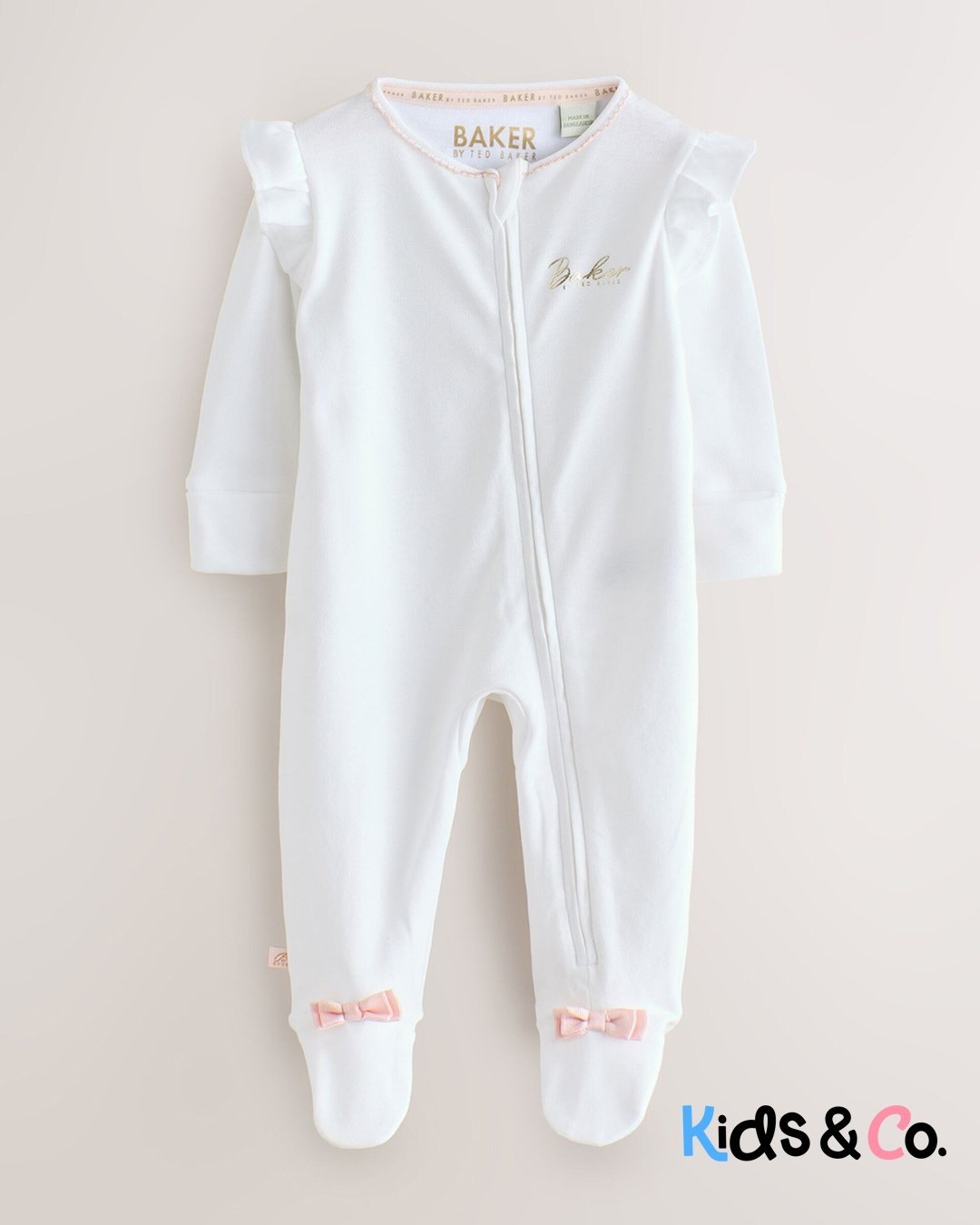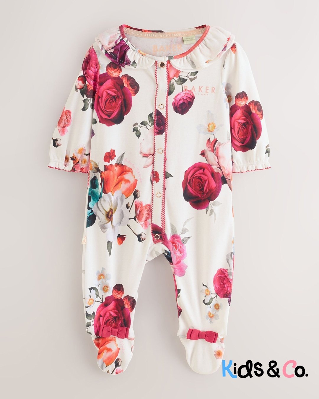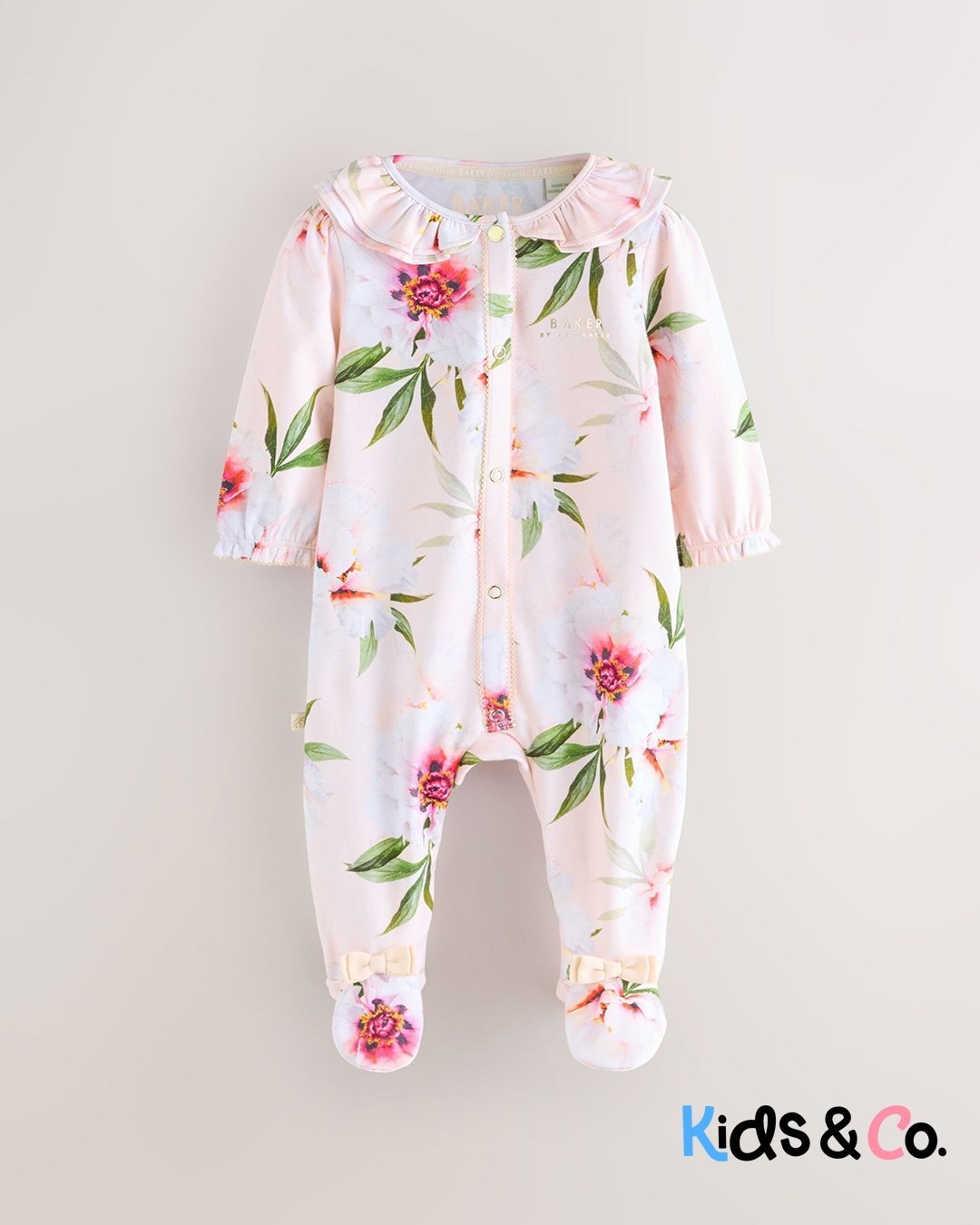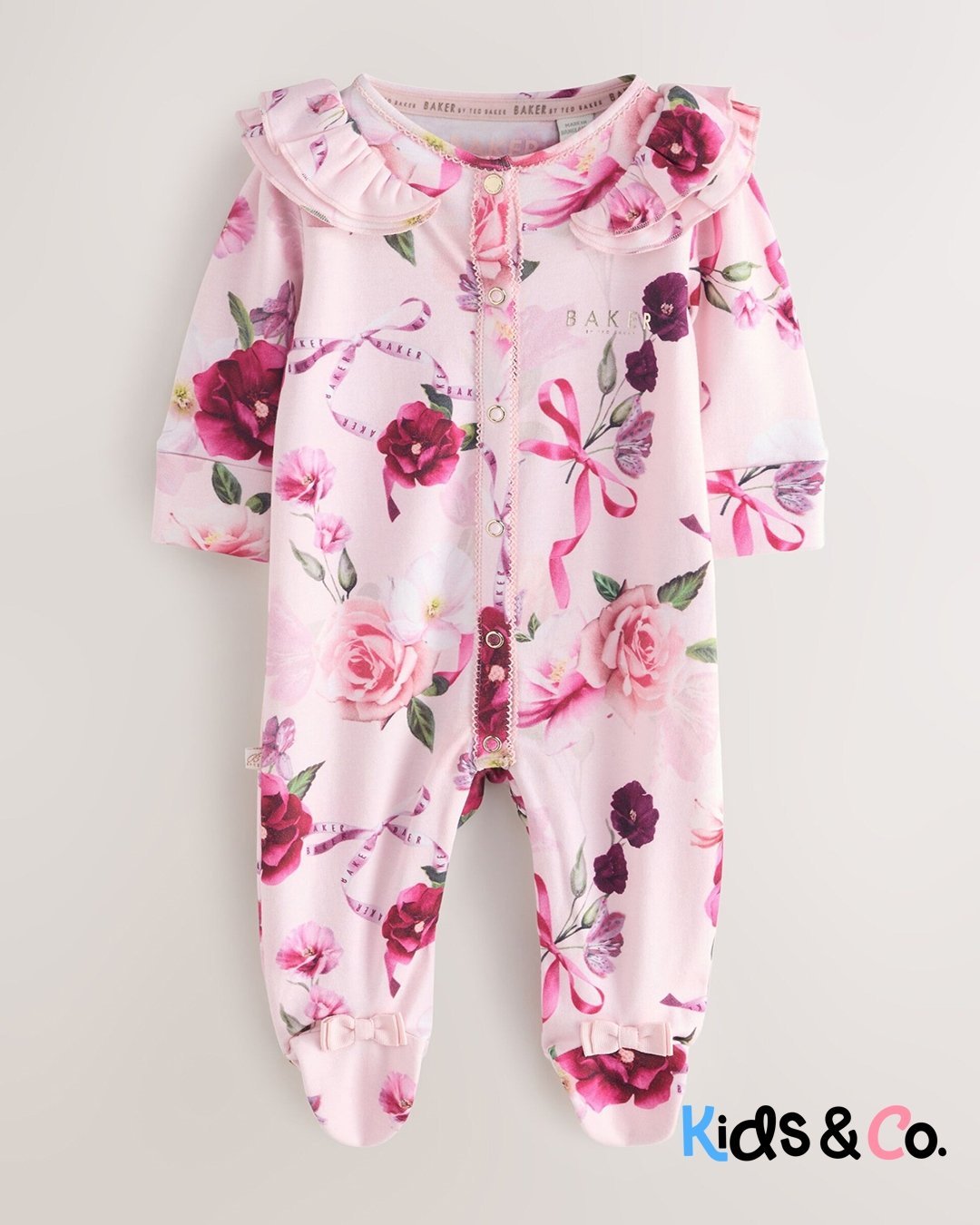 These adorable sleepsuits from Baker by Ted Baker will keep your little one looking and feeling great. The pack contains three sleepsuits all crafted in soft cotton with the iconic branding printed across the chest and pink bow details on the feet. They are also designed with popper fastenings between the legs to help at changing times.