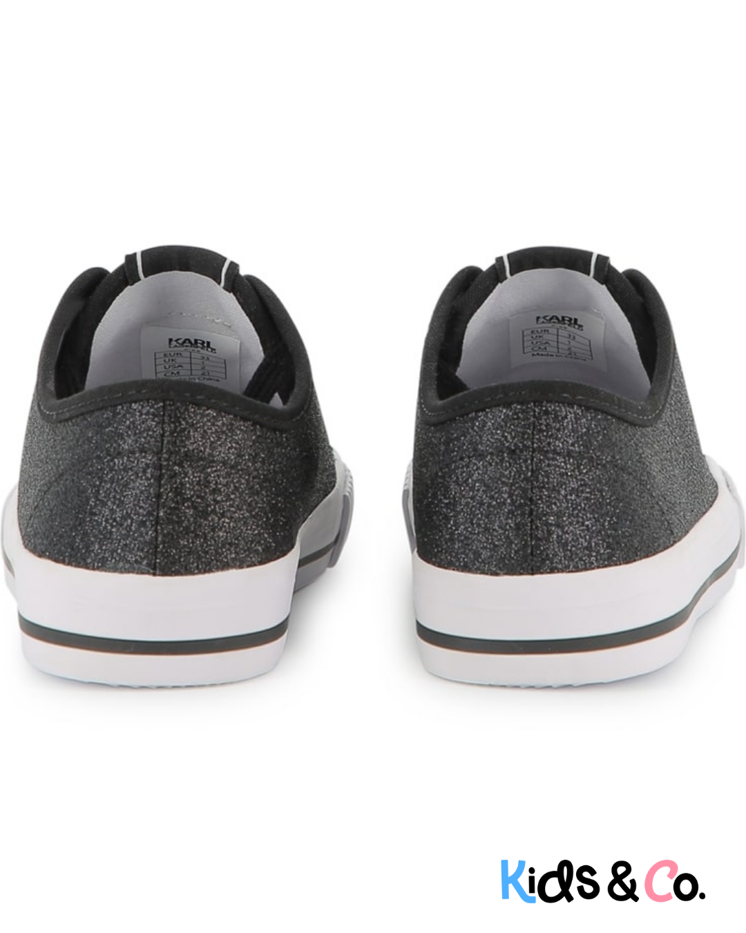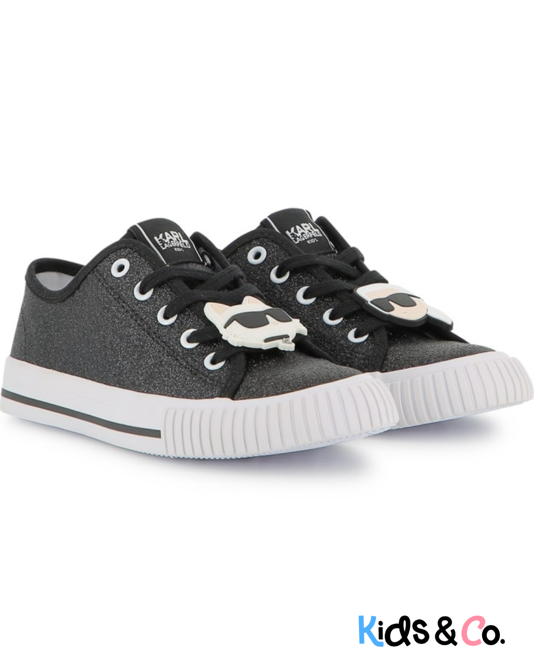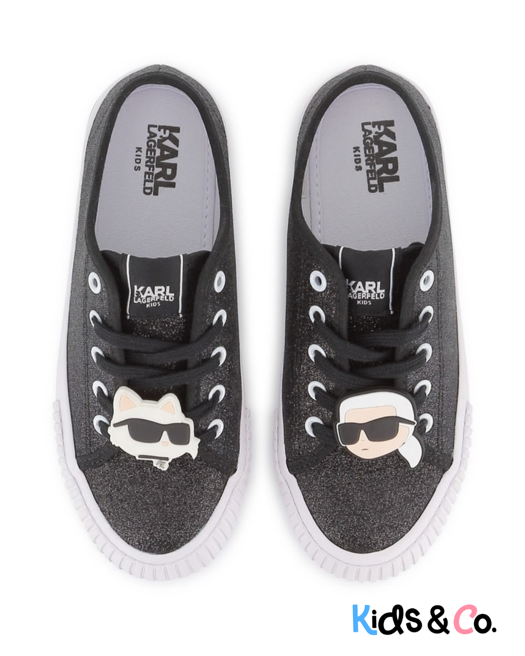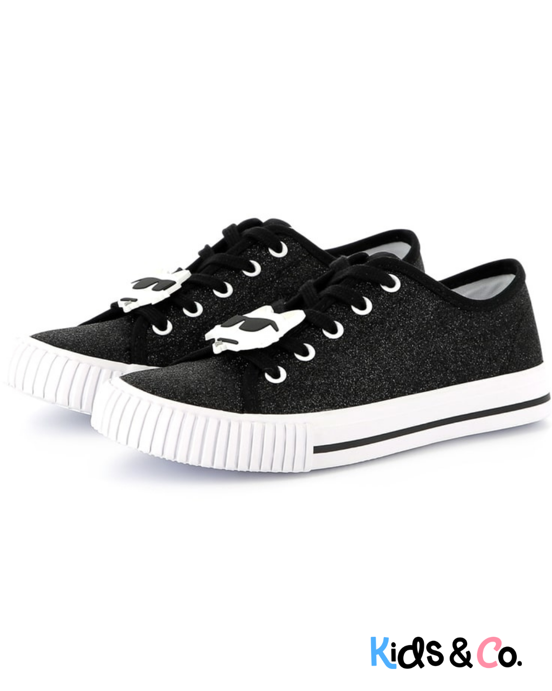 Inspired by an adult model, these KARL LAGERFELD KIDS low-top sneakers are embellished with sequins. A rubber badge with the effigy of Choupette is on the laces. The outsole is made of natural rubber. This model is sold in a shoebox.
