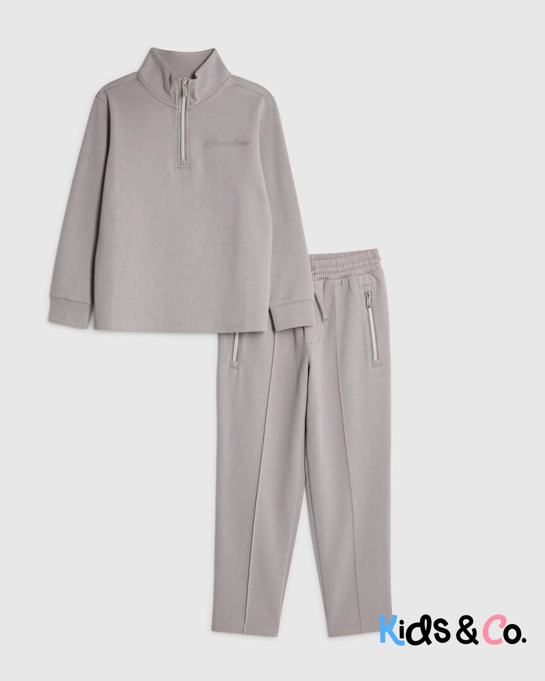 Boys Grey Zip Funnel Sweatshirt Set