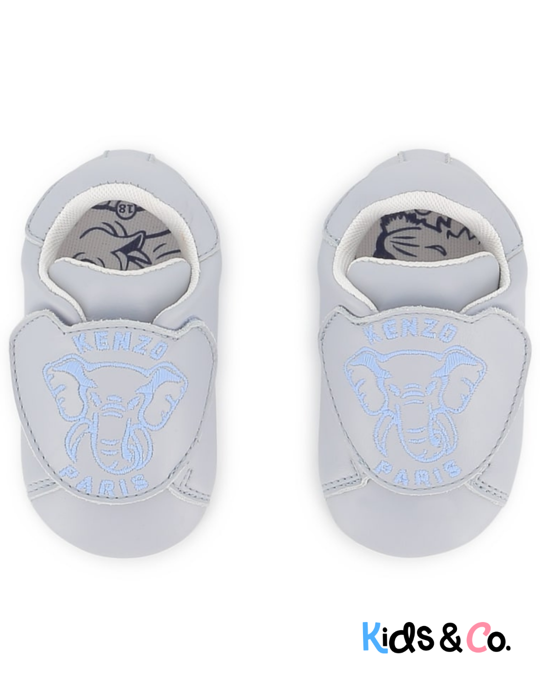 These adorable baby booties in soft cowhide leather by KENZO KIDS envelop little feet in softness. The convenient hook-and-loop closure makes it easy to put on, while the brand’s signature embroidered elephant on the front adds a playful and elegant touch. Made of mineral-tanned cowhide, they combine comfort and quality from the very first steps.