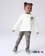 smALLSAINTS Grey Leopard Orlando Long Sleeve T-Shirt and Leggings Younger Girls Set