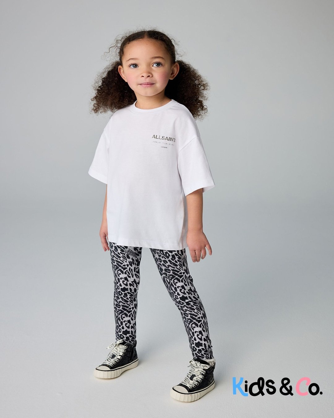Cool and comfortable, this Underground oversized t-shirt and leggings set from smALLSAINTS is ideal for easy everyday wear. The set comes with a short sleeve T-Shirt in an oversized fit with AllSaints signature logo across the chest alongside leopard print leggings with an AllSaints branded elastic waistband. 2 piece set Oversized T-Shirt Leopard print leggings AllSaints branded detailing Machine washable. T-shirt Main 100% Cotton. Neck 95% Cotton, 5% Elastane. Leggings 95% Cotton, 5% Elastane.