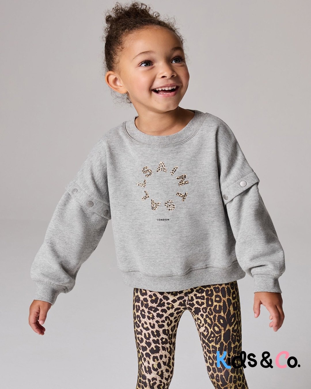 smALLSAINTS Grey/Leopard Tierra Sweatshirt and Legging Younger Girls Set