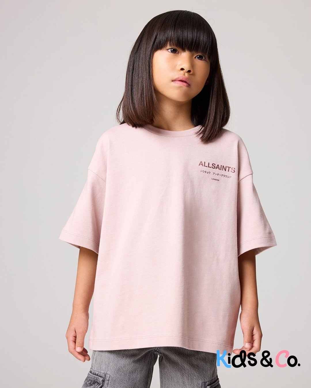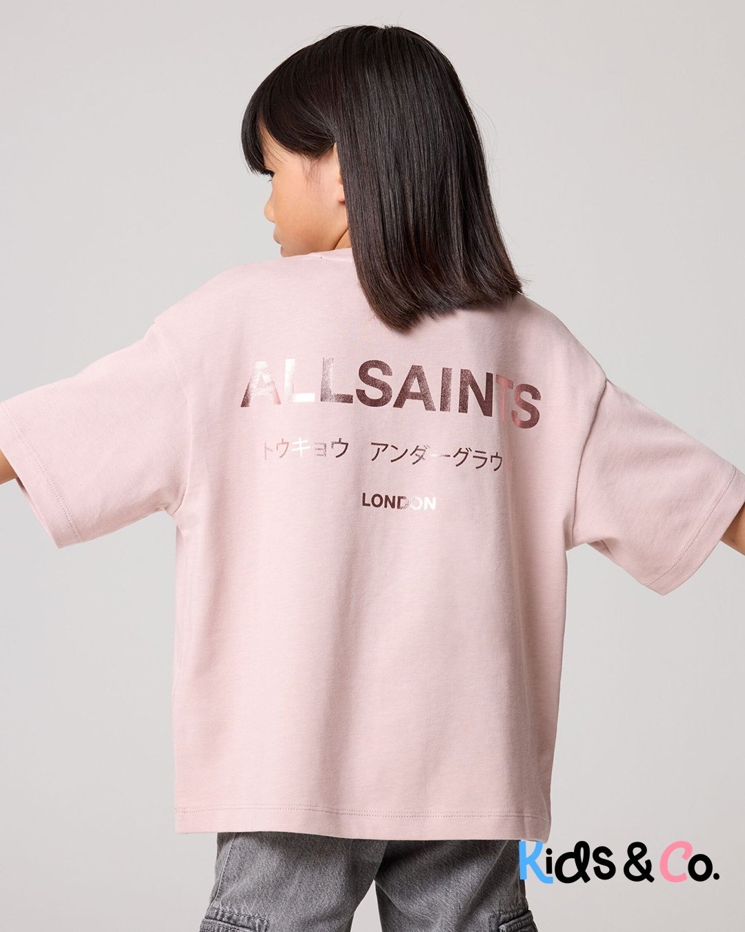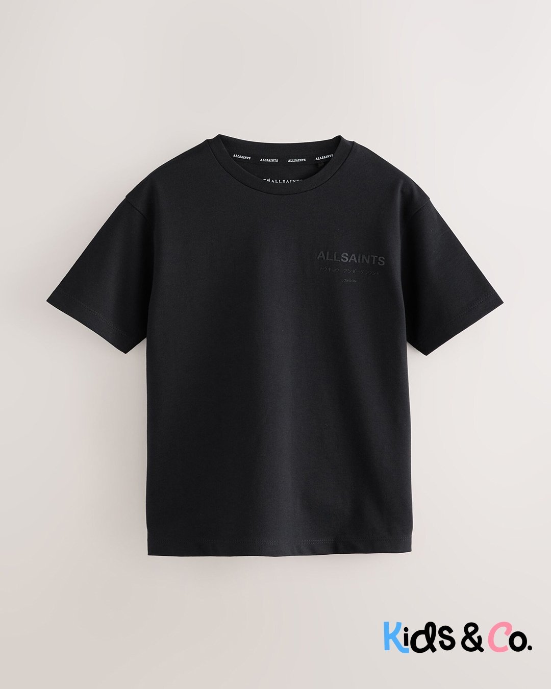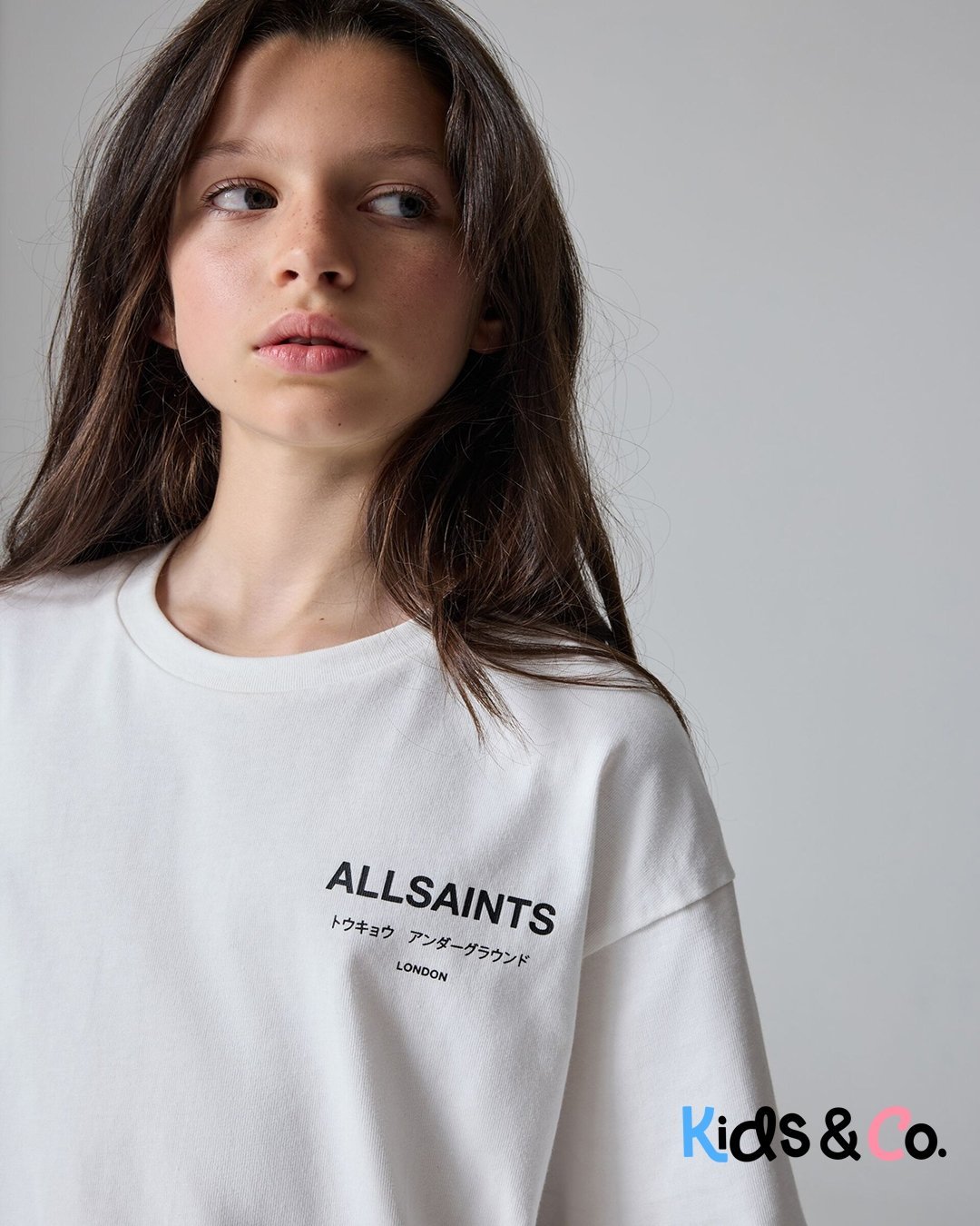 Crafted from cotton with an oversized fit, this white Underground T-Shirt from smALLSAINTS features the brand’s signature on the chest and back with a crew neck. It’s a timeless piece that will be their new favourite everyday style. AllSaints signature logo on the chest and back Crew neck Short sleeve Oversized fit Crafted from 100% cotton Machine washable. Main 100% Cotton. Neck 95% Cotton, 5% Elastane.