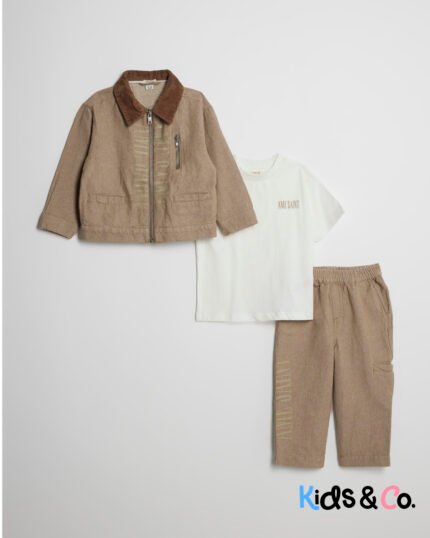 Mini Boys Beige Twill Ame Saint Shacket Set