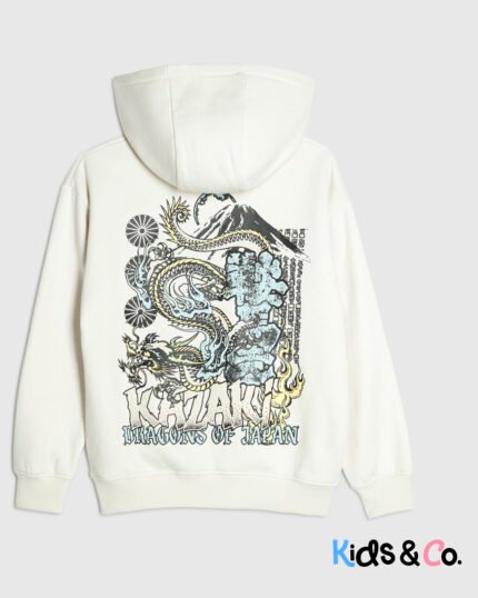 Boys Cream Kazaki Japanese Back Print Hoodie