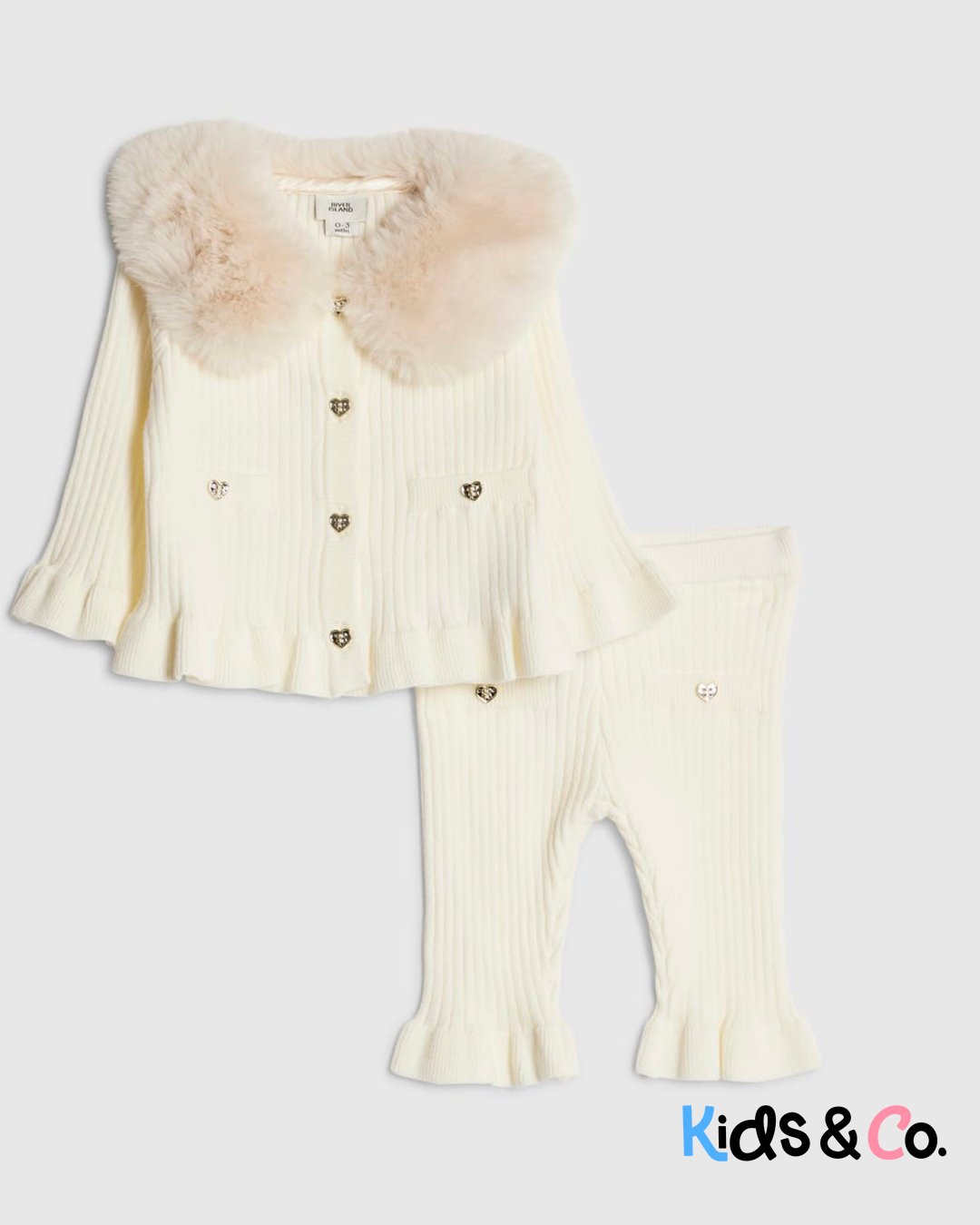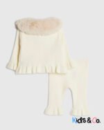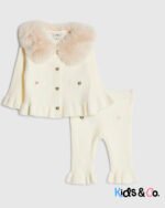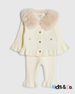 Baby Girls Beige Faux Fur Collar Cardigan Set