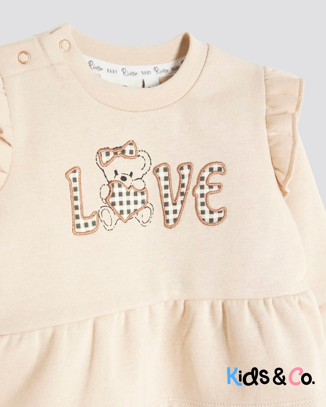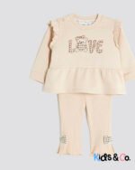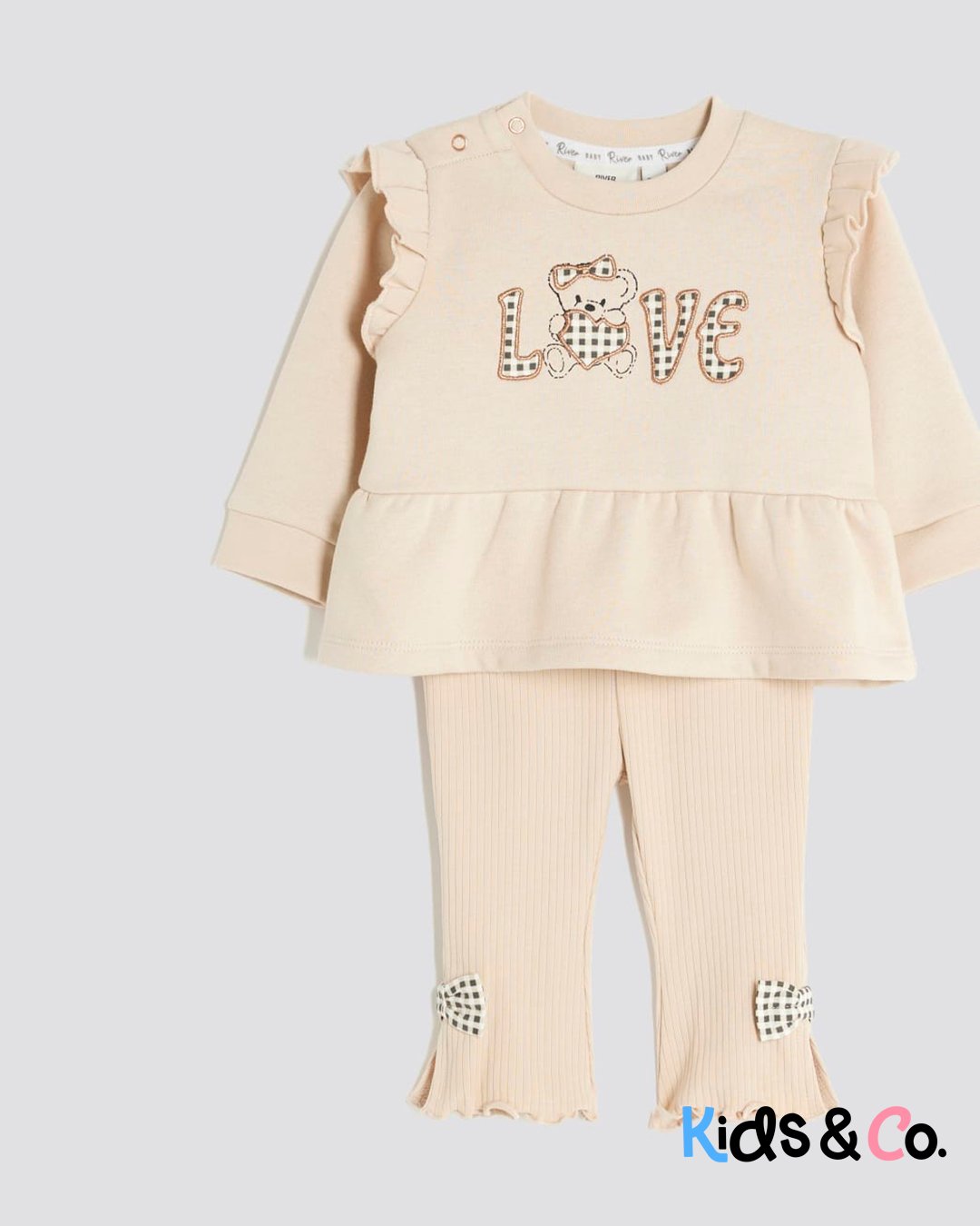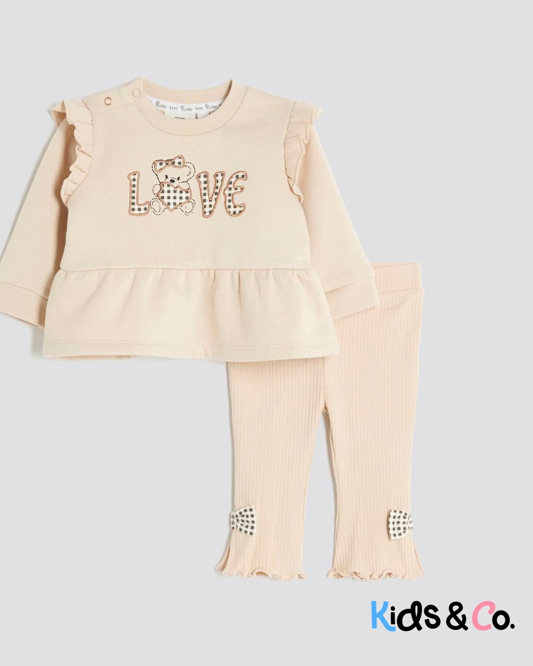Set of 2 Sweatshirt Crew neck Gingham Love text graphic Peplum hem Long sleeves Leggings Gingham bow detail Elasticated waistband