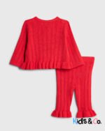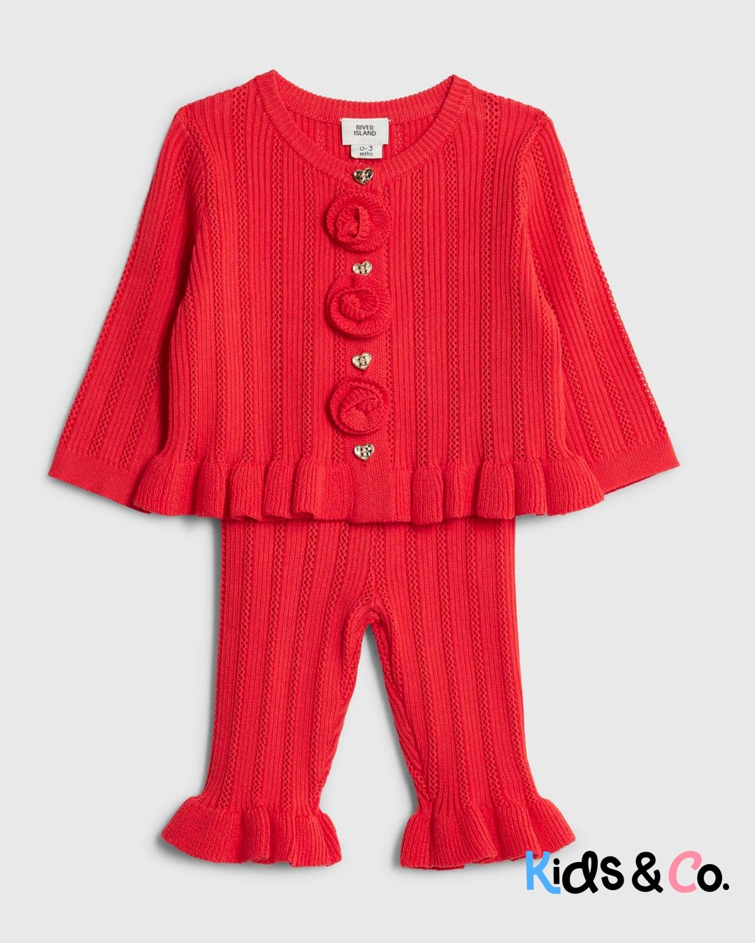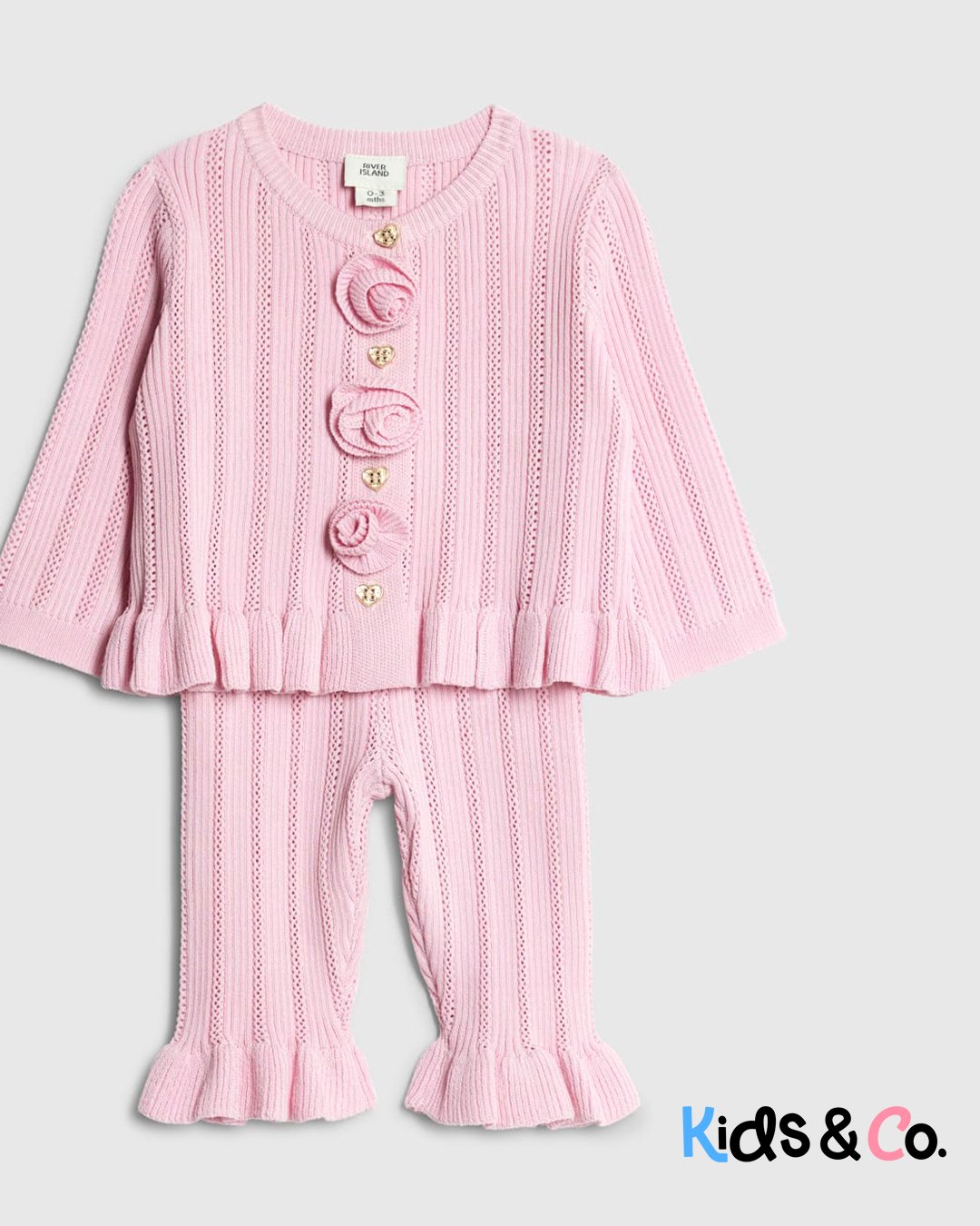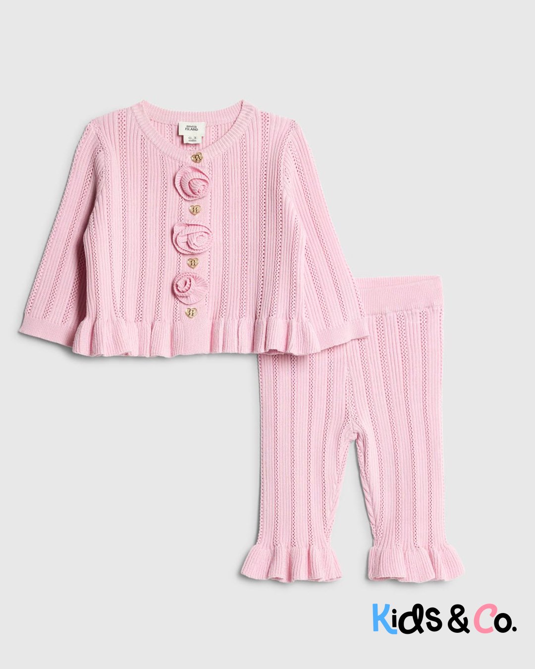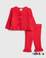 Set of 2 Knitted Cardigan Rose applique Buttoned fastening Long sleeves Bottoms Elasticated waistband
