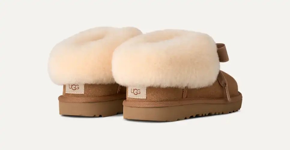Going walking in a winter wonderland? Take little ones along with the ulra-cozy Bailey Slipper. It has a genuine suede upper with a sheepskin collar and fixed bow. Inside, tiny toes will be surrounded in our signature UGGplush™ lining and insole. Finished with a sugarcane EVA outsole, it’s perfect for both indoor and outdoor wear.This product was made in a factory that supports women in our supply chain with the help of Reimagining Industry to Support Equality (RISE). This collaborative initiative creates partnerships with brands like ours to empower and educate women in the workplace.