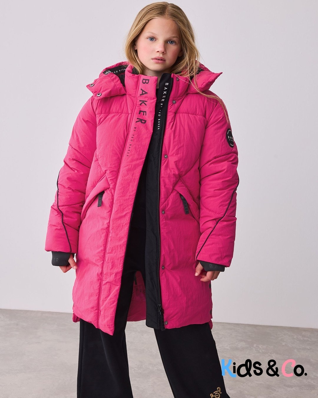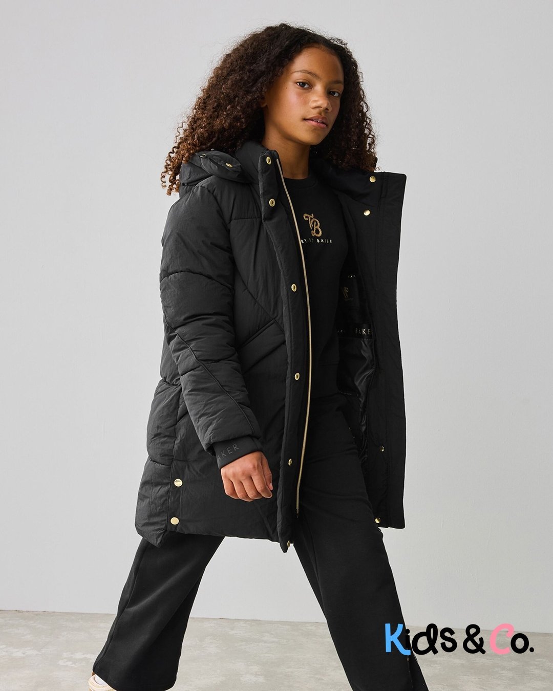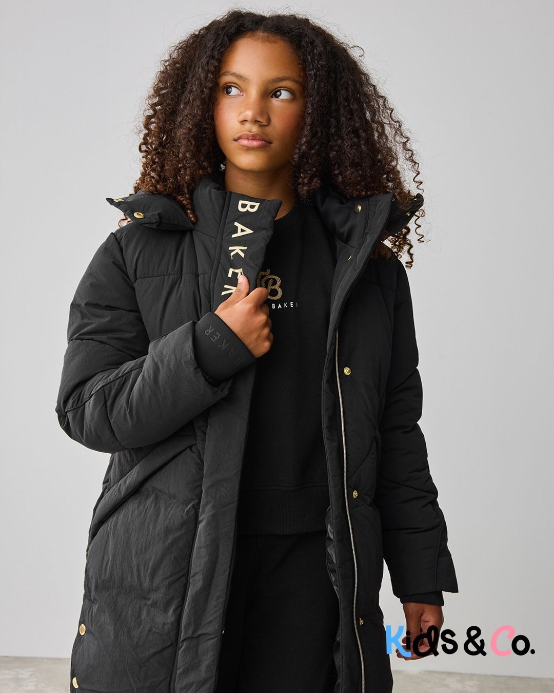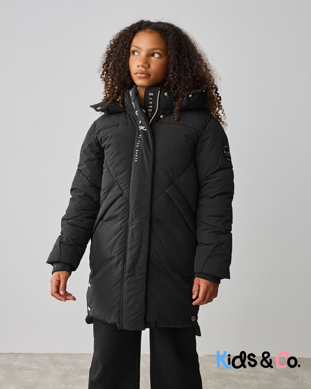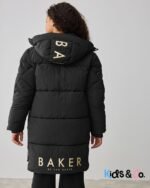 Get her prepared for the autumn showers with this iconic padded longline coat from Baker by Ted Baker. Shower resistant and warm, this is an ideal coat for the cold weather. With thick padding and angled pockets, this coat also features branded Baker zip pullers which are also removeable, as well as branded poppers on the front placket and side seams. The inside includes Baker branded tape and printed features, with an internal pocket. Details include embossed branded storm cuffs and a Baker badge on the arm. She’ll want to wear this coat all winter long! Shell 100% Nylon. Upper Lining 100% Polyester. Lower Lining 100% Polyester. Wadding 100% Polyester. Cuffs 94% Polyester, 6% Elastane. Shower resistant, water repellent finish to provide protection against light rain.