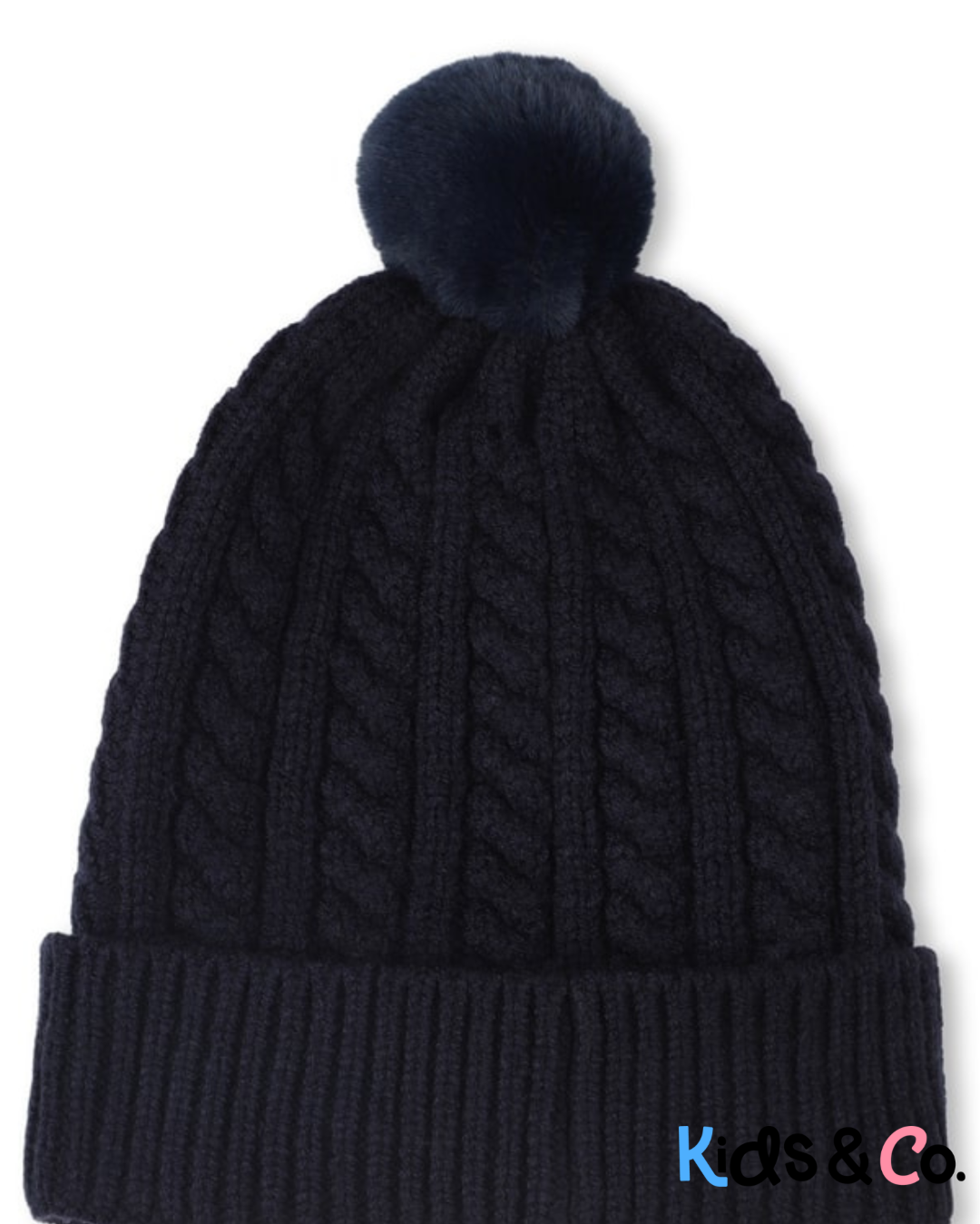 This BOSS cable-knit beanie with pompom combines warmth and elegance. Its embroidered logo testifies to the care taken in the finishes. A soft winter accessory, perfect for styling toddlers’ outfits.