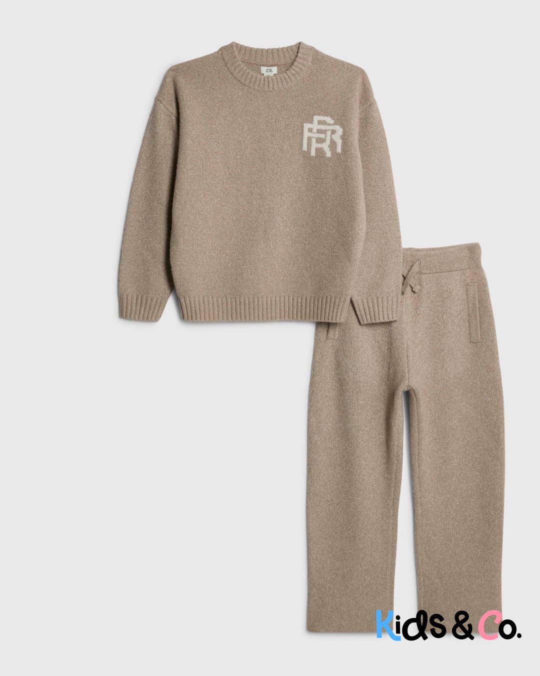 Set of 2 Knitted Jumper Crew neck RR graphic Long sleeves Trousers Side slip pockets Elasticated drawstring waist