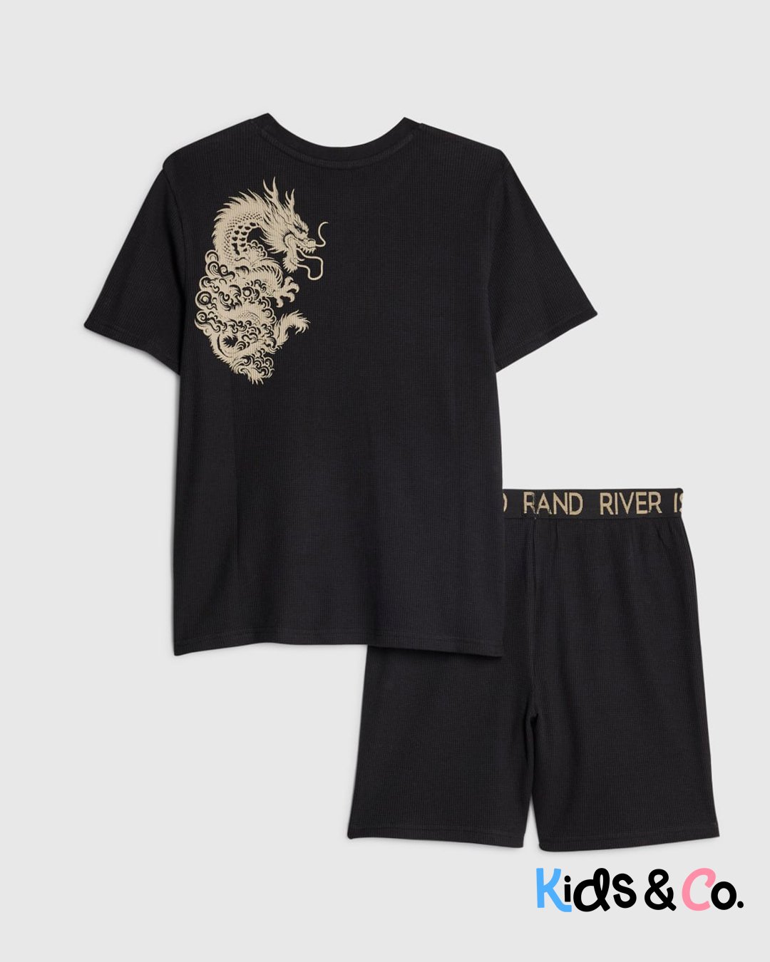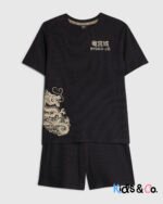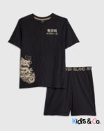 Boys Black Japanese Waffle Pyjama Short Set