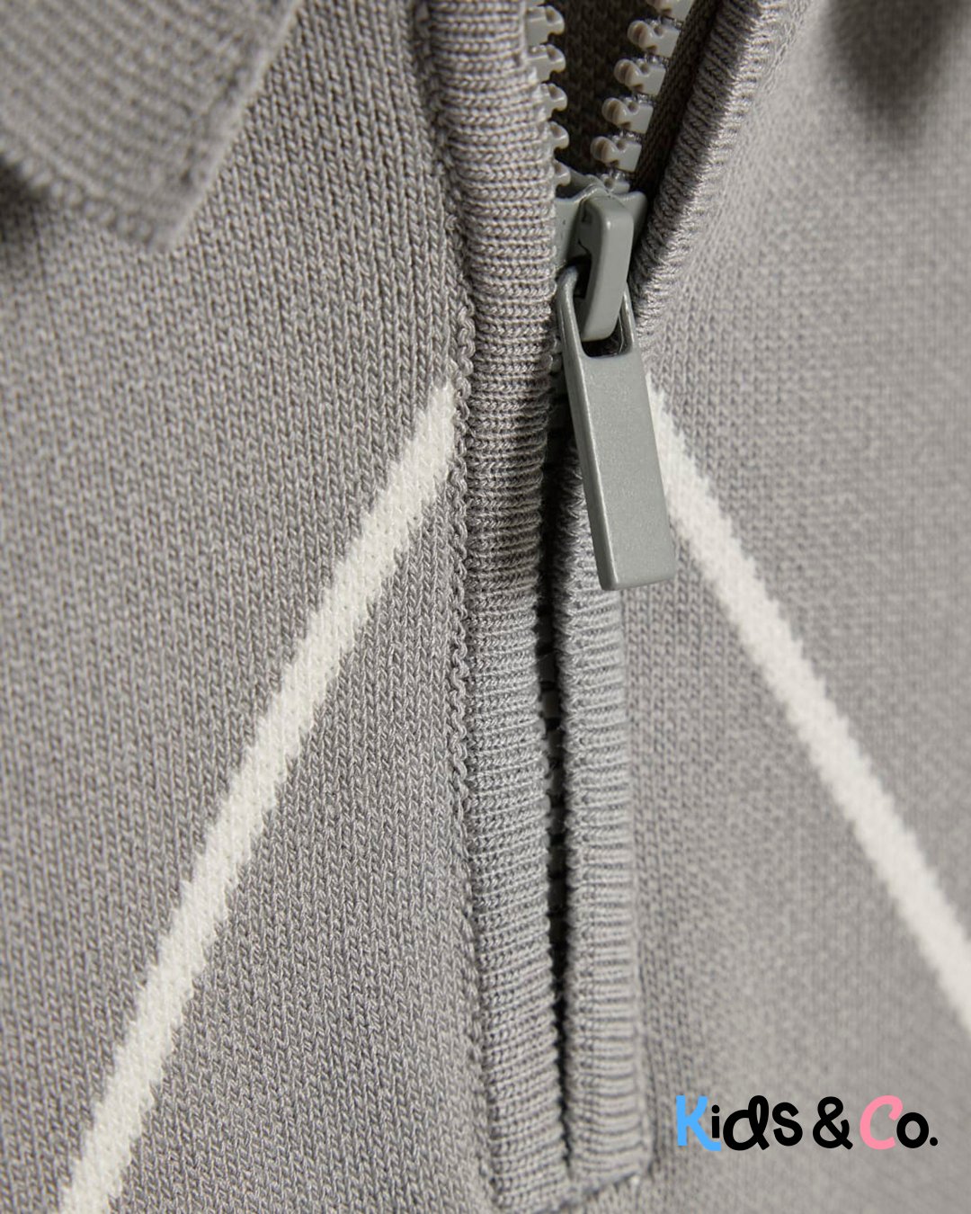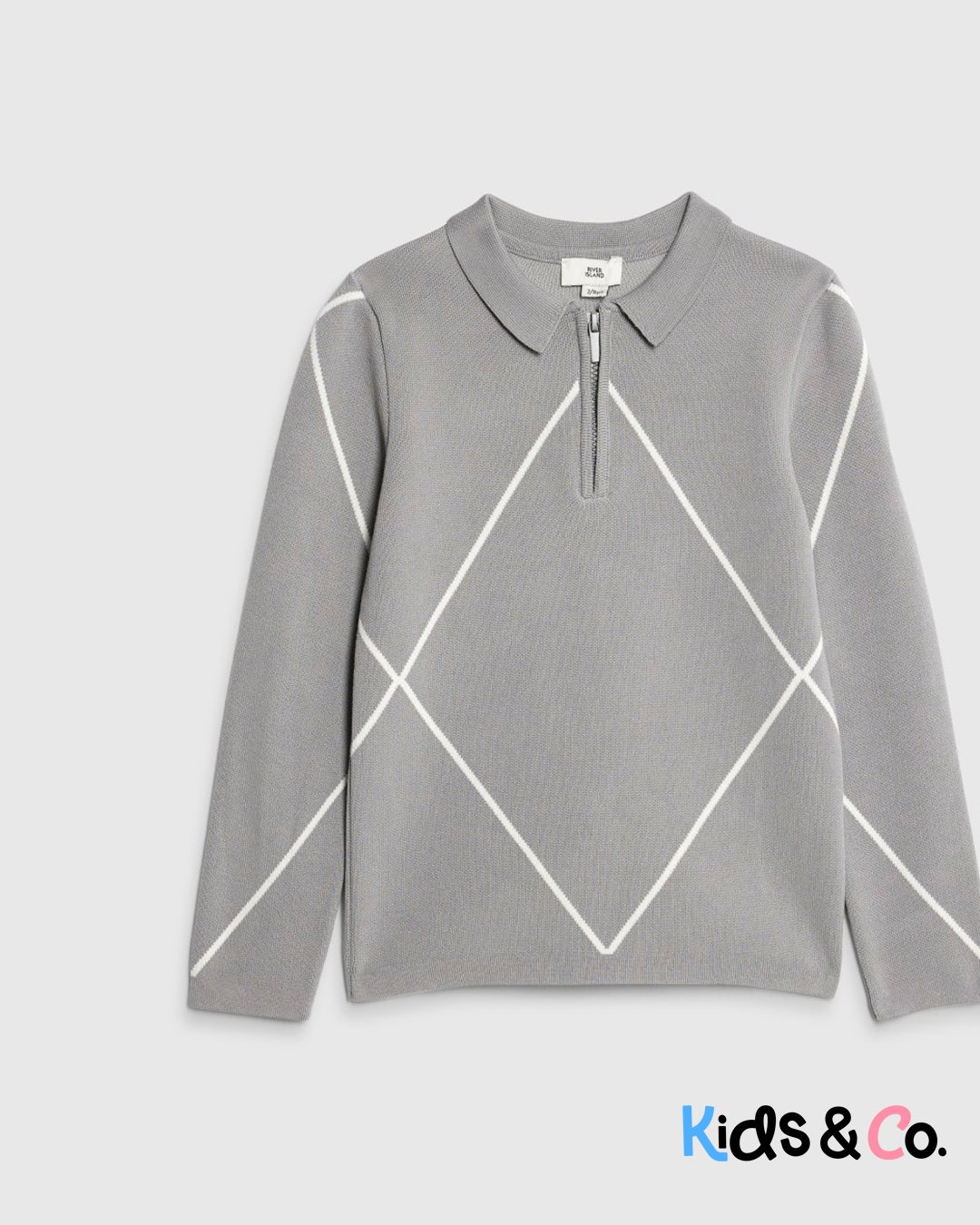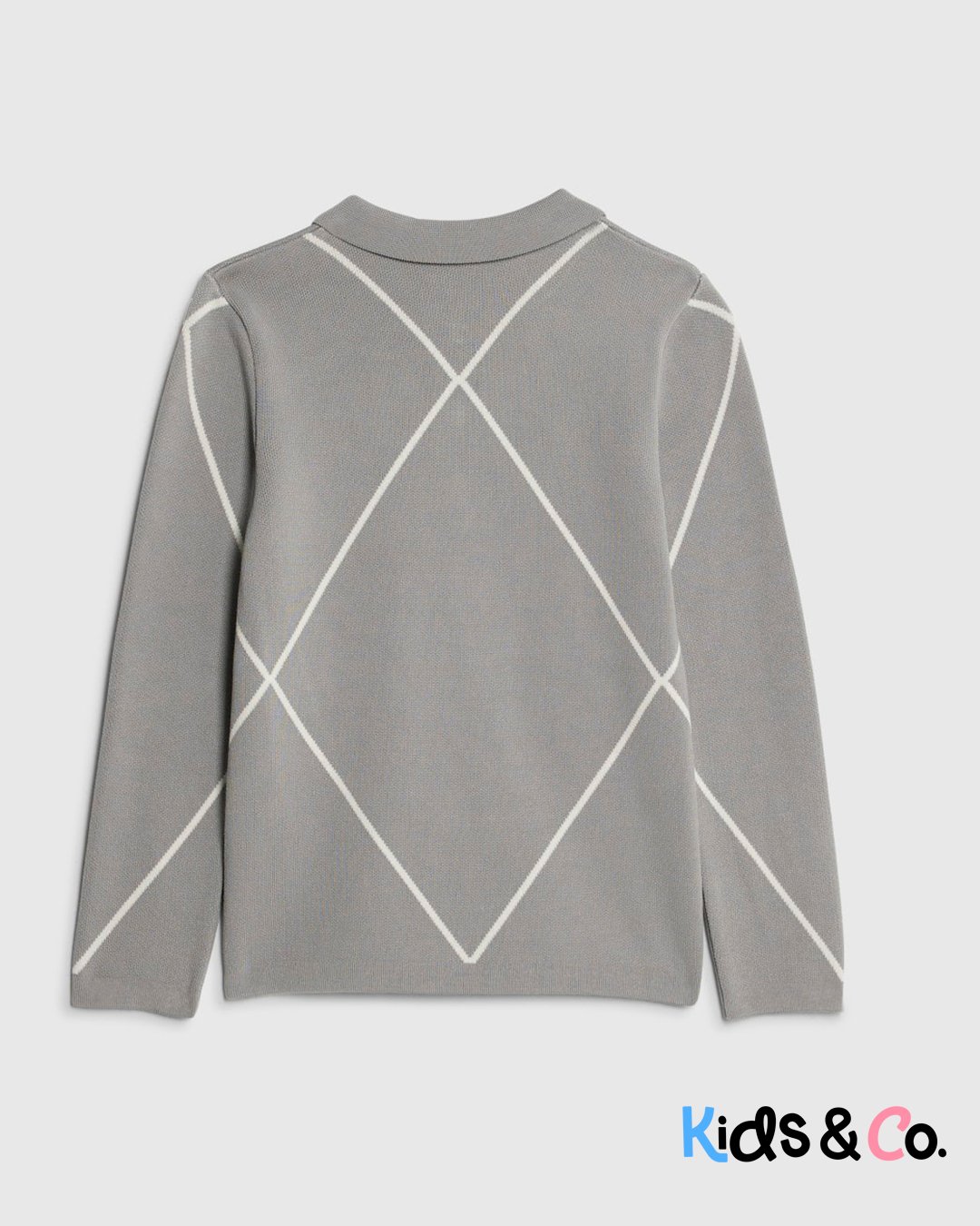 Polo collared Quarter zipped Diamond argyle print Long sleeves
