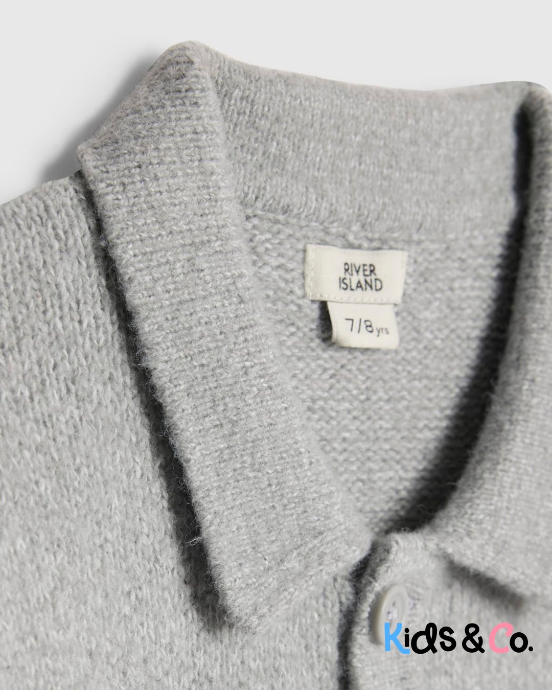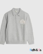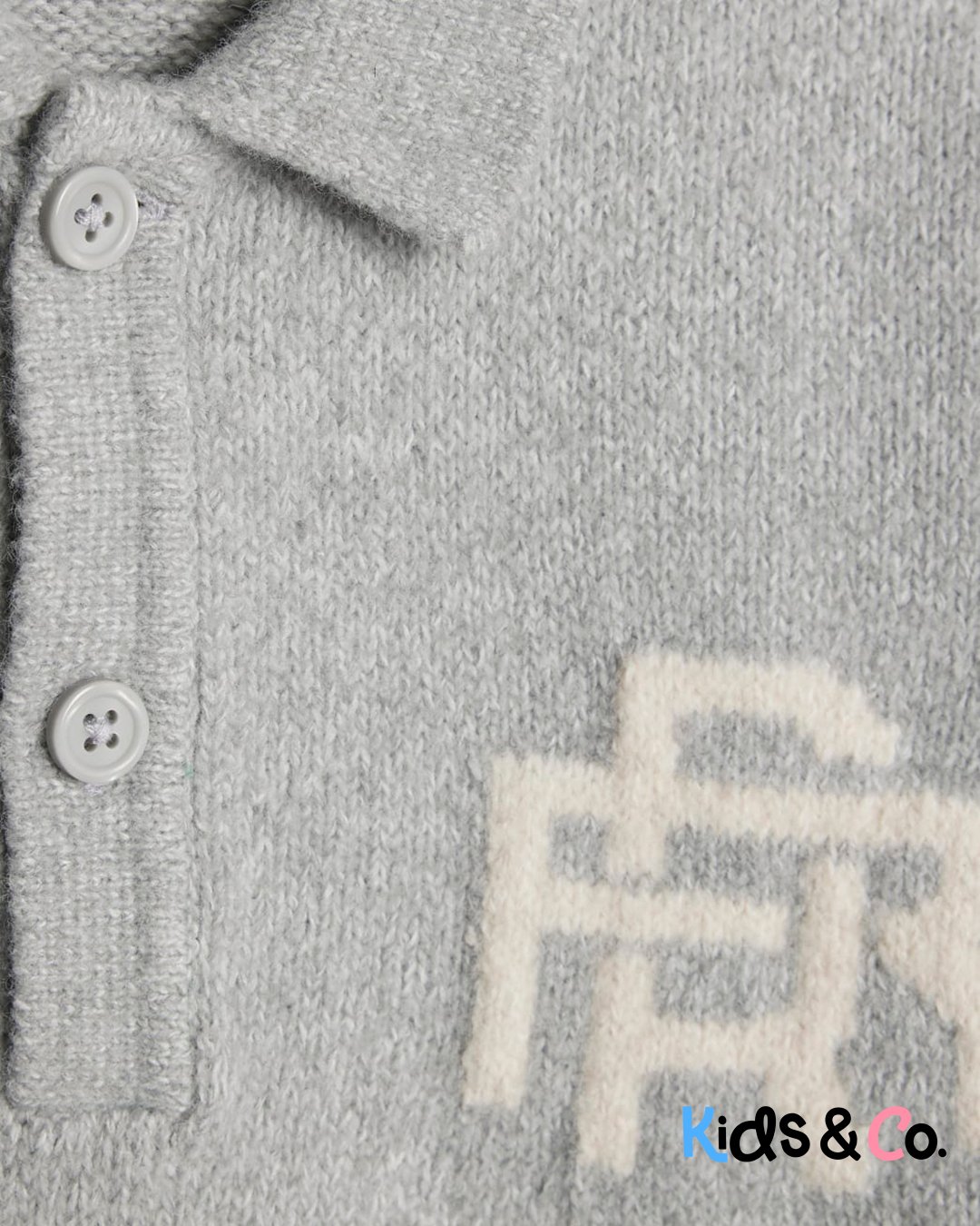 Polo collared Knitted RR graphic Quarter buttoned Long sleeves