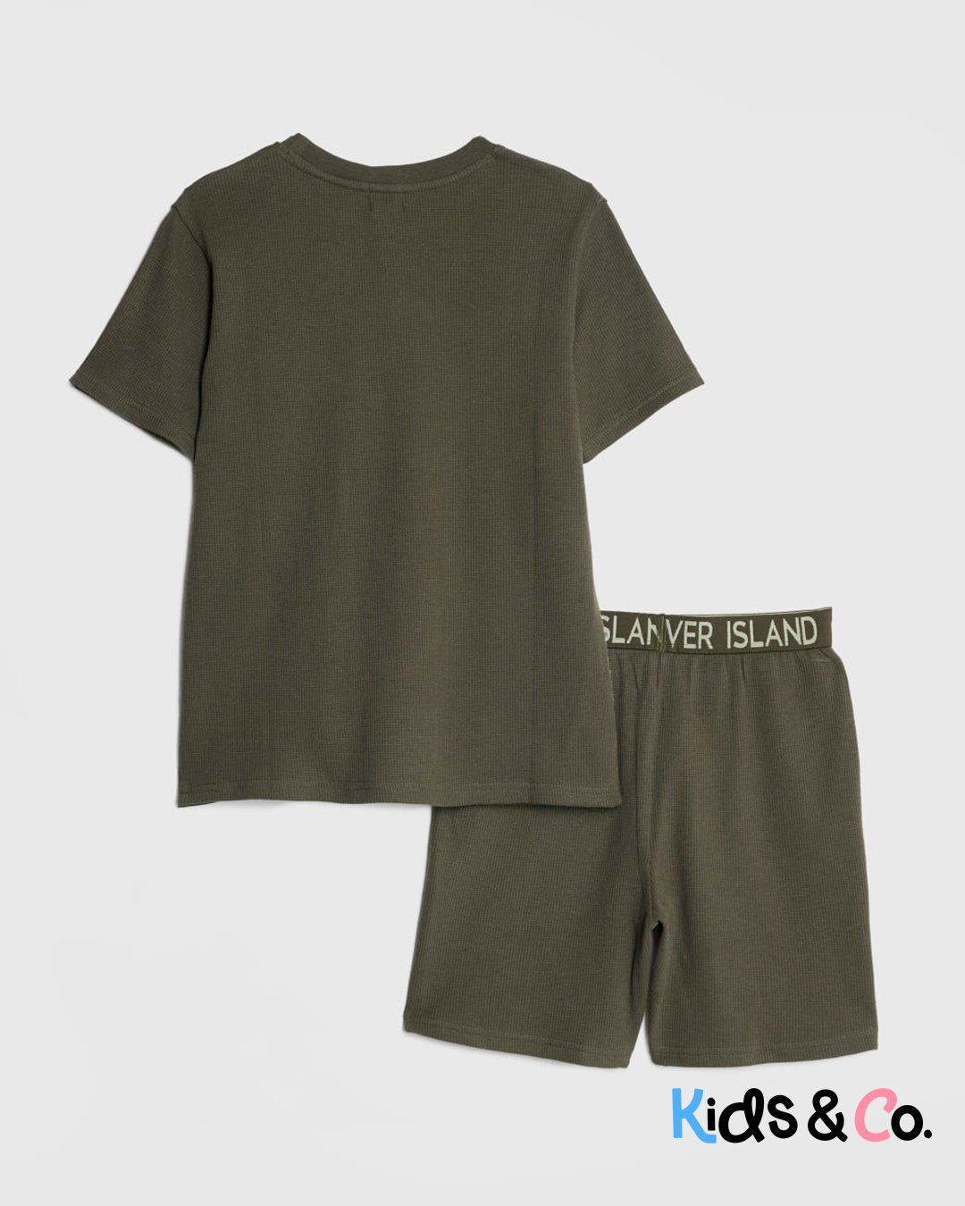Boys Khaki RR Waffle T-Shirt Pyjama Set