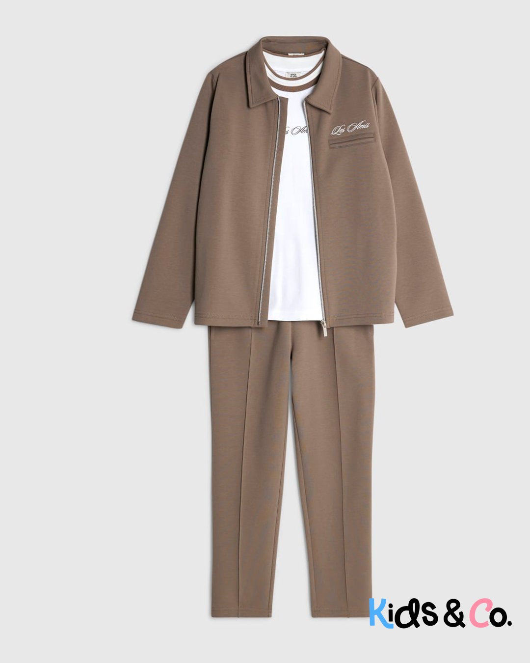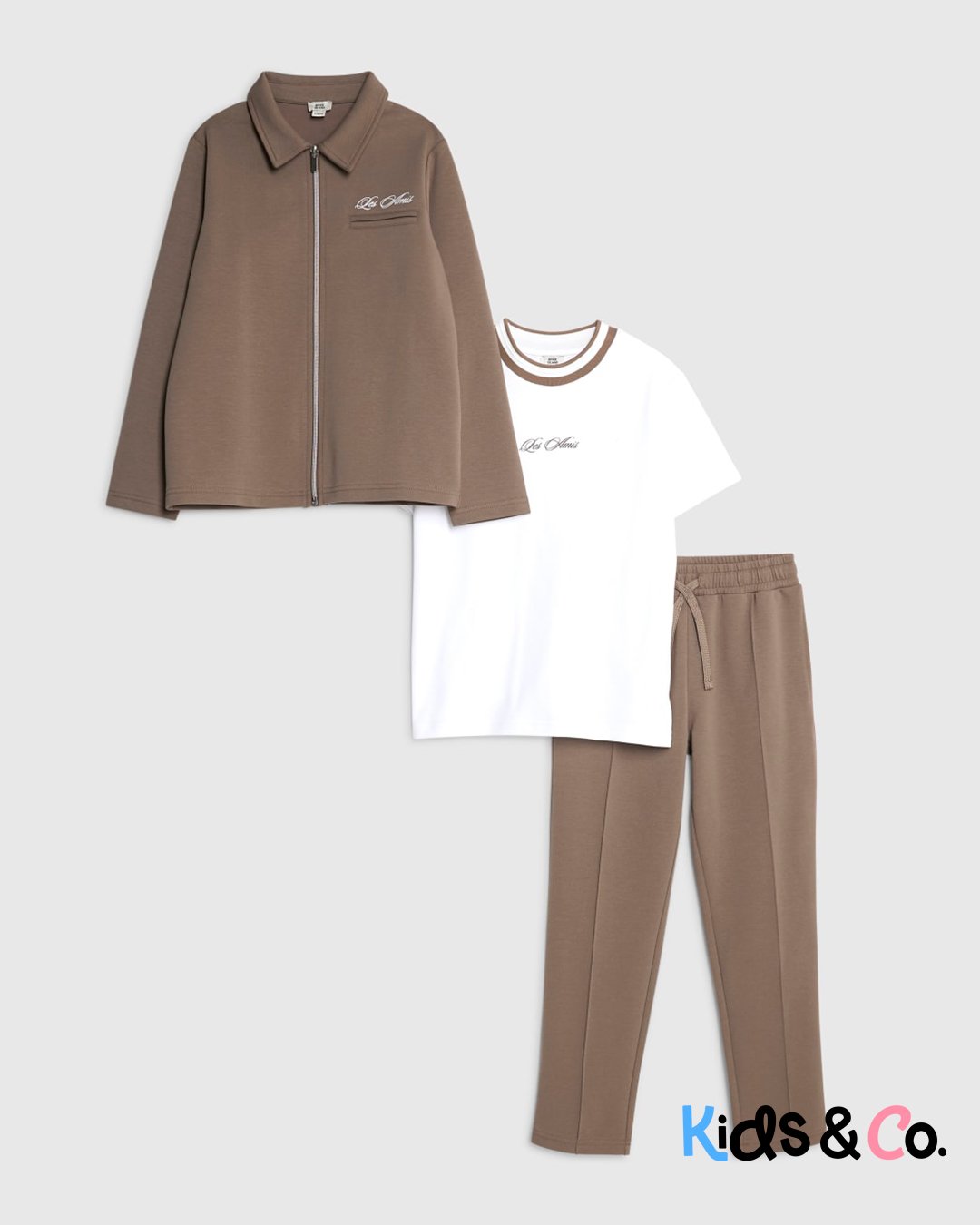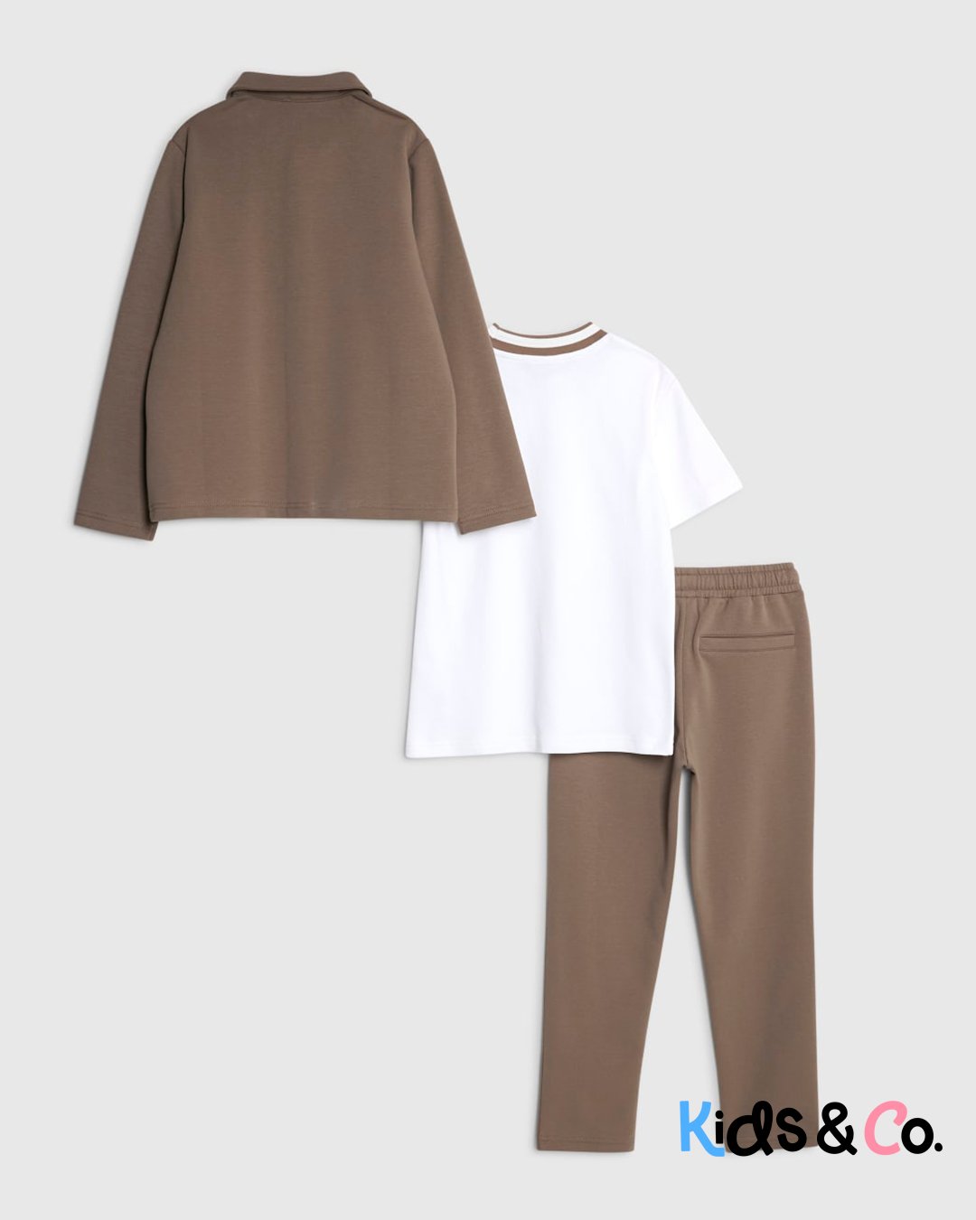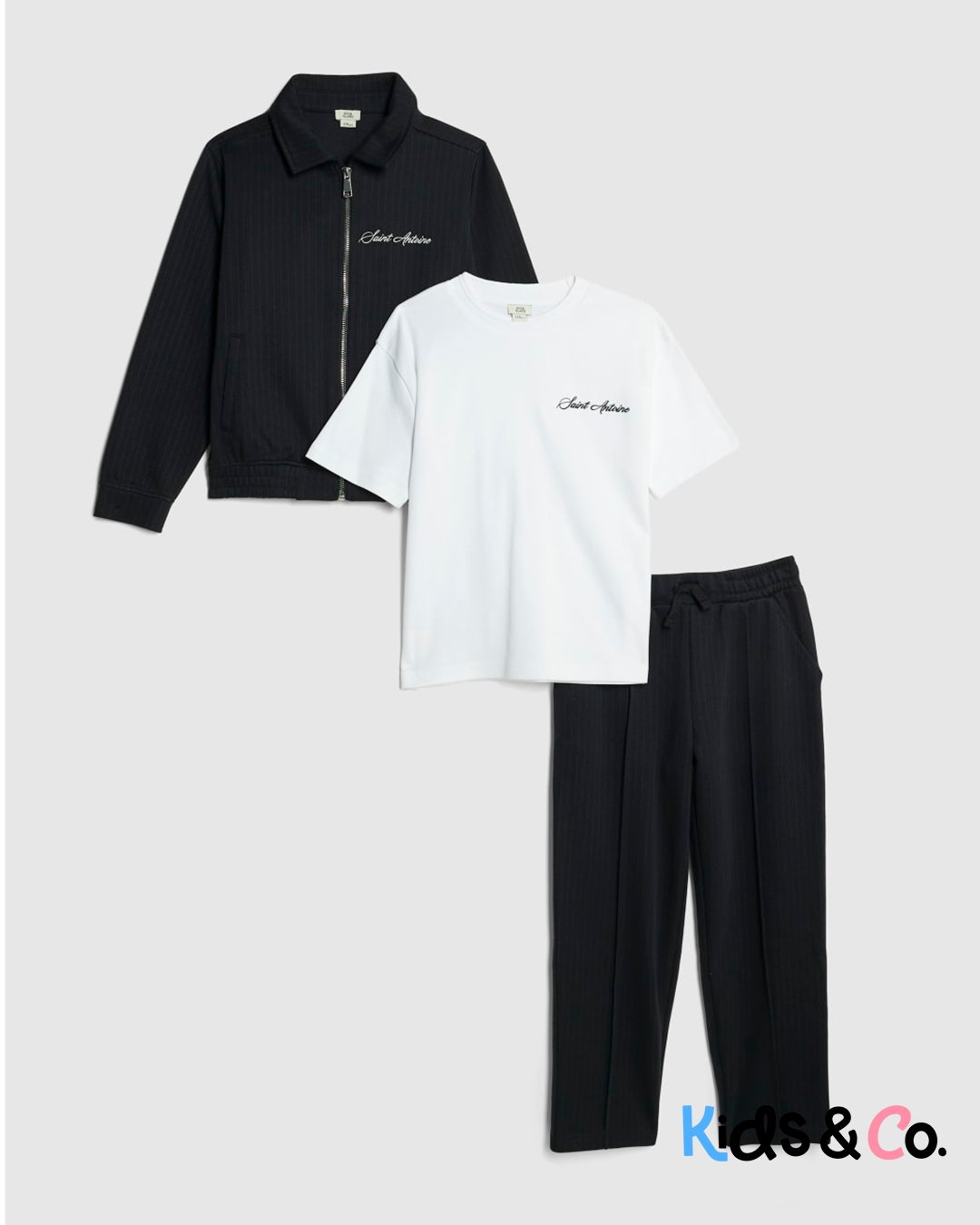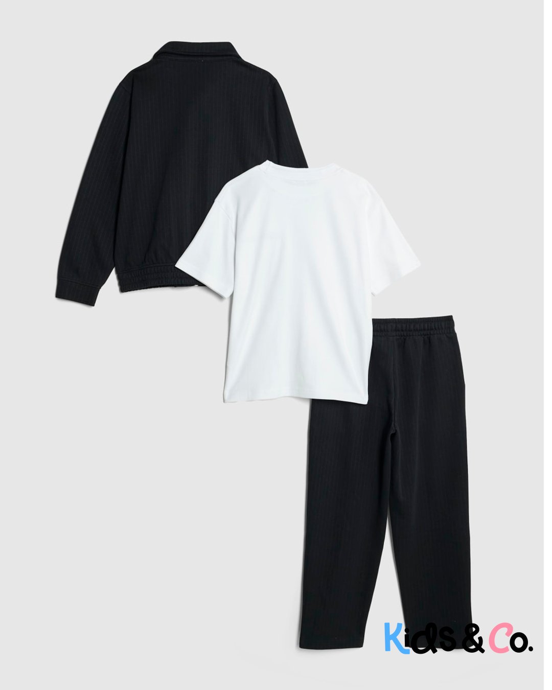 Set of 3 Pinstriped print Matching embroidered graphic Shirt Collared Zipped Slip pockets Long sleeves T-Shirt Crew neck Short sleeves Bottoms Elasticated waistband Slip pockets