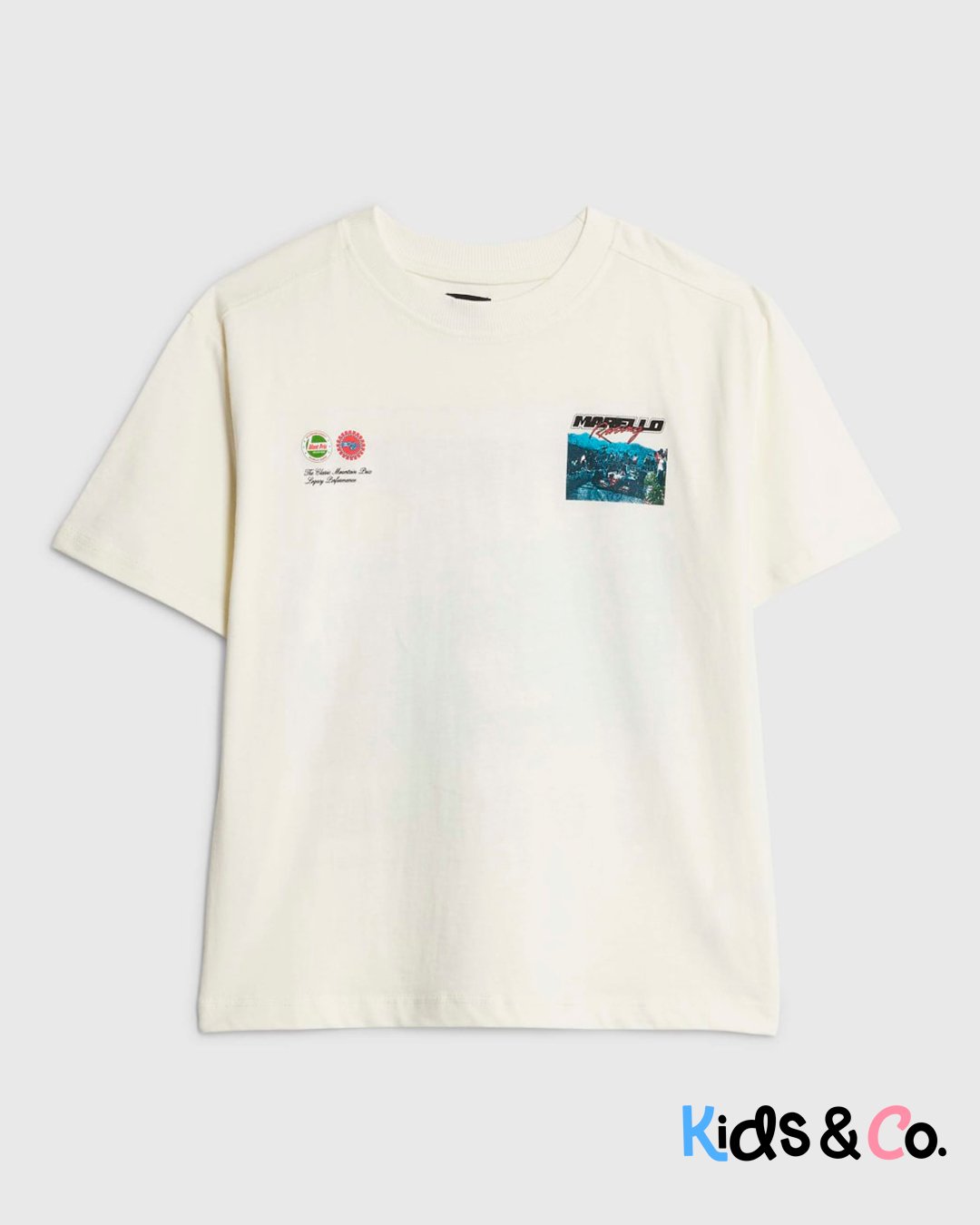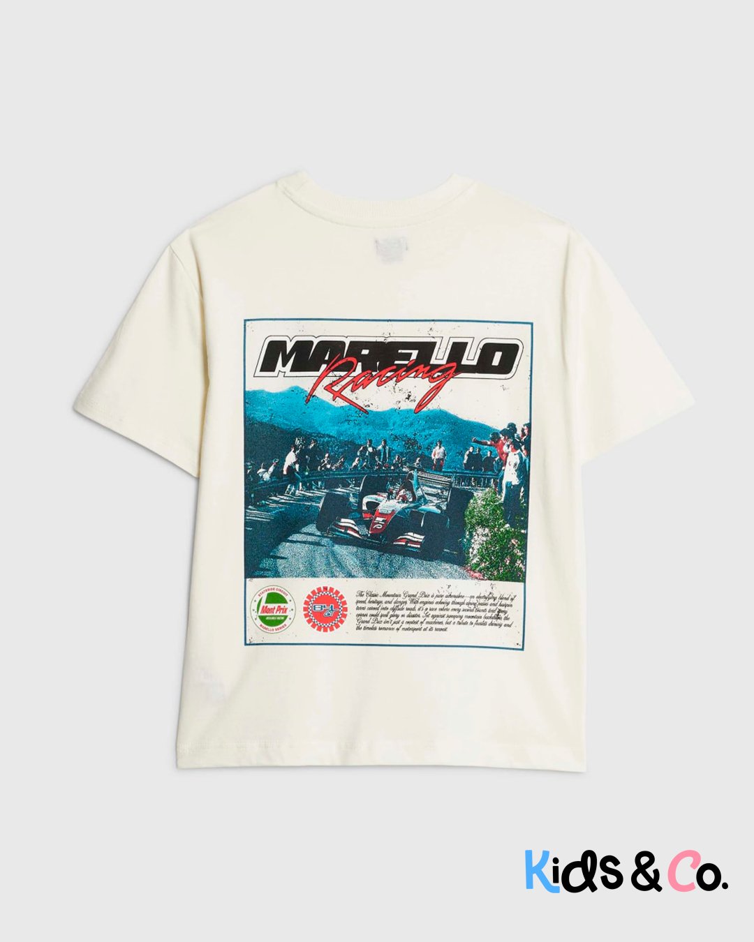 Home Boys Boys White Marcello Car Back Print T-Shirt