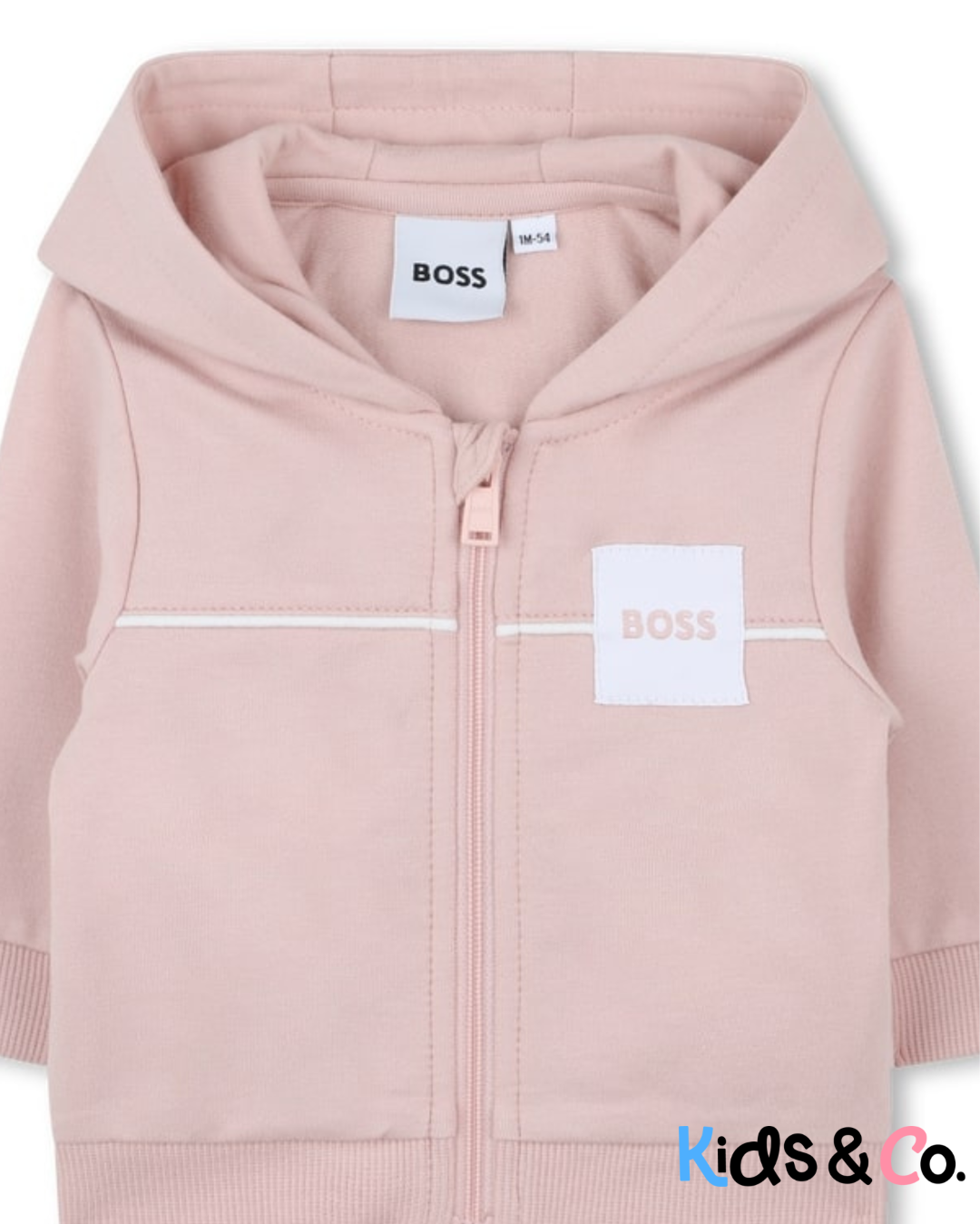 BOSS offers a three-piece set consisting of a zip-up hooded cardigan, jogging pants and a long-sleeved T-shirt. The brushed fleece cardigan is decorated with a striped band at the chest. The matching trousers are characterised by side stripes and soft fabric. The T-shirt, adorned with the fancy logo print, is practical with its snap button opening at the shoulder.