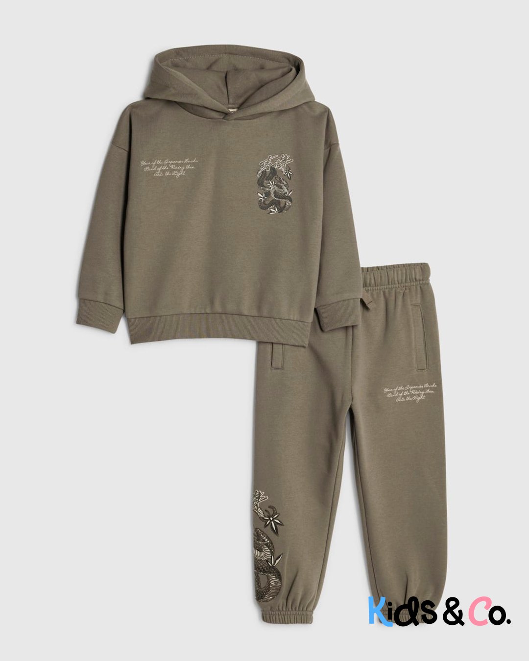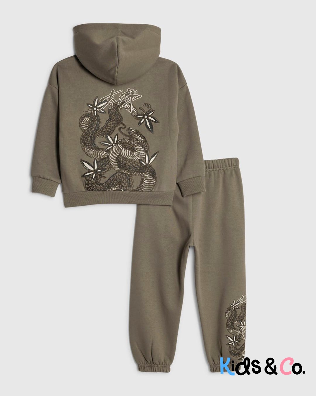 Set of 2 Matching dragon graphic Hoodie Hooded Embroidered graphic Long sleeves Joggers Elasticated drawstring Side slip pockets