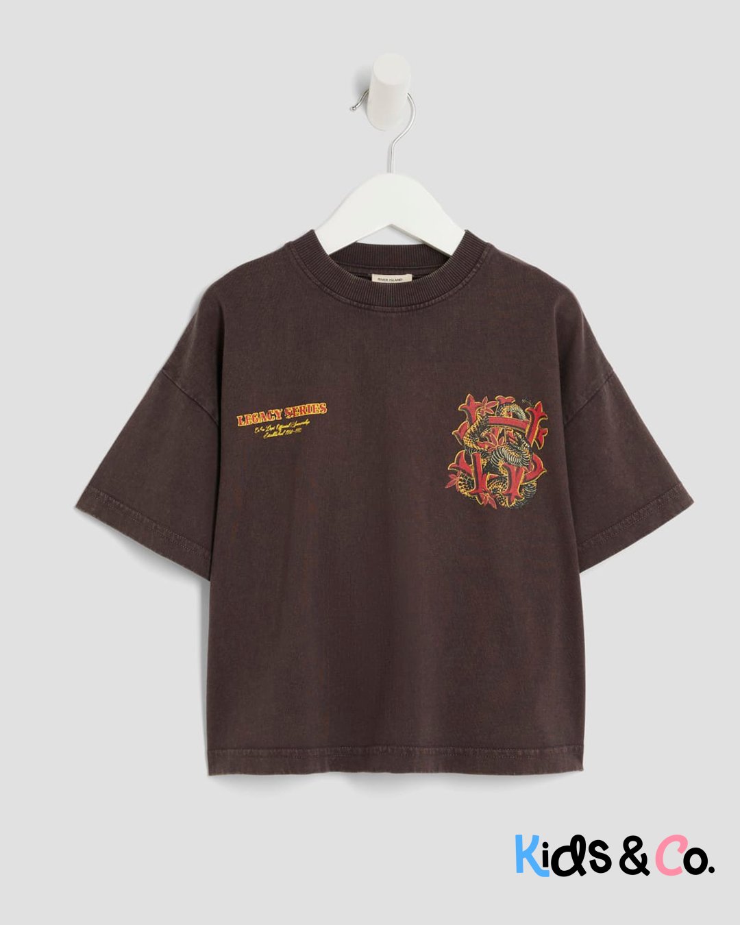 Home Boys Mini Boys Brown Snake Back Print T-Shirt