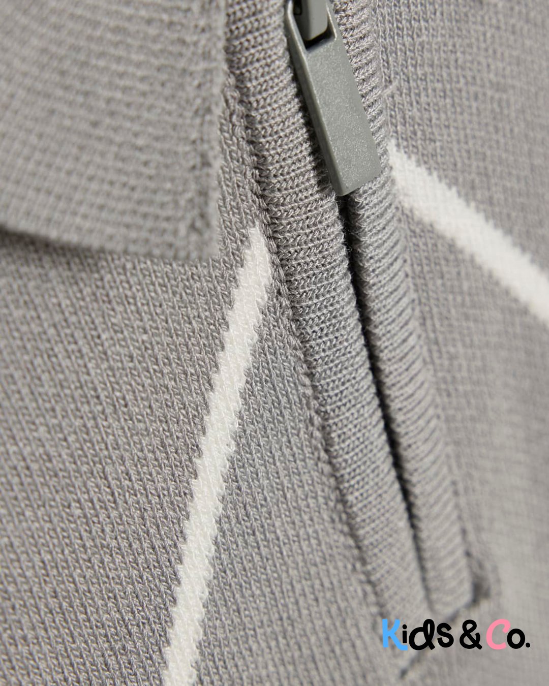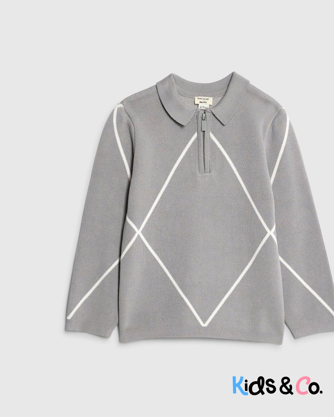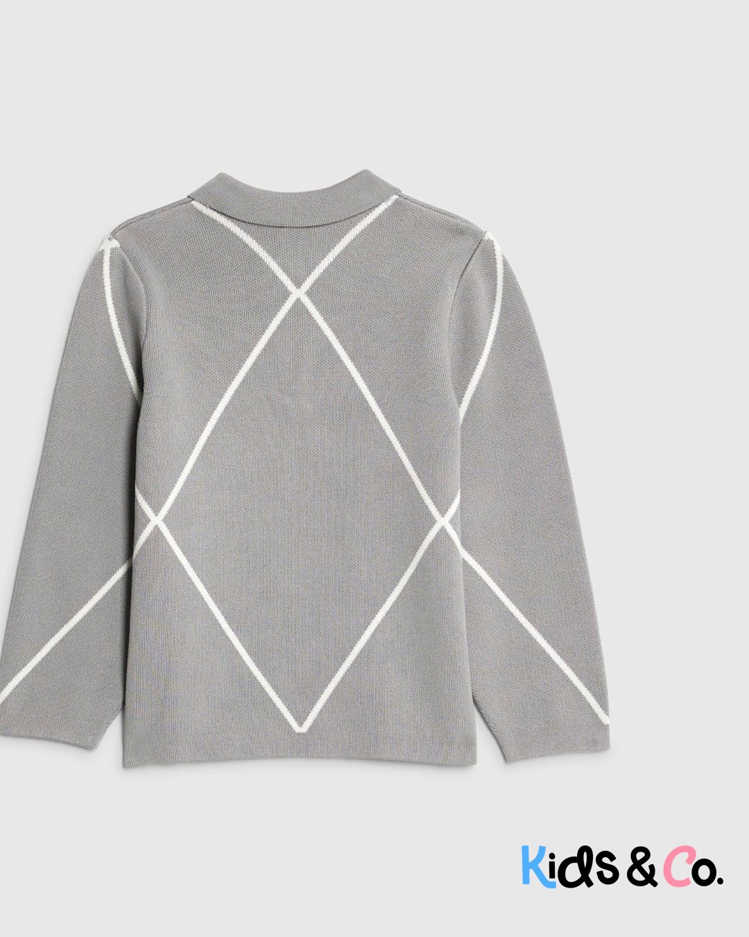 Polo collared Knitted Quarter zipped Diamond print Long sleeves