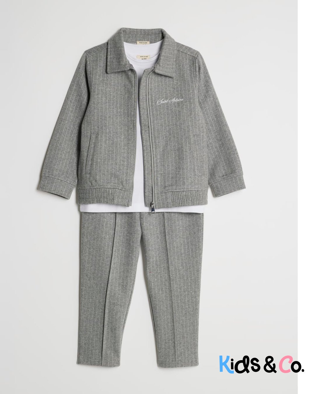 Home Boys Mini Boys Grey Pinstripe Jacket Piece Set