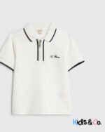 Mini Boys White Textured Polo Shirt