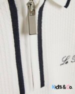 Collared Quarter zipped Textured Embroidered graphic Short sleeves
