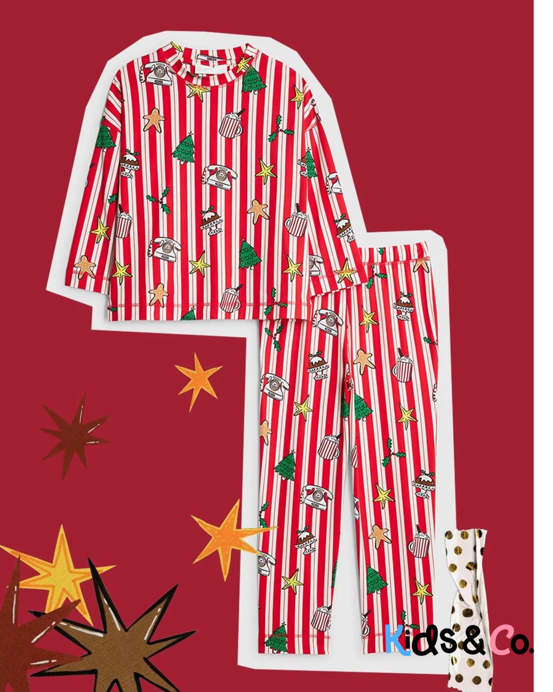 Nephthys Collection Set of 2 Matching Christmas print Top Crew neck Long sleeves Trousers Elasticated waistband