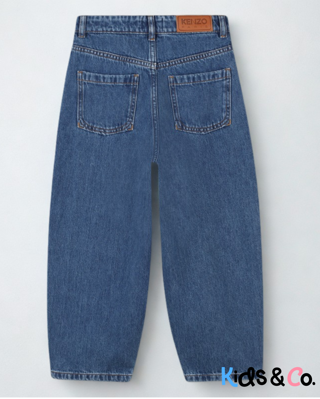 These denim trousers from KENZO KIDS impress with their modern asymmetrical cut and urban feel. Made from cotton, it has practical side pockets and a snap fastening at the front. A logo label placed on the back belt completes this model with a signature touch, perfect for everyday looks.