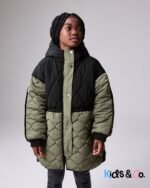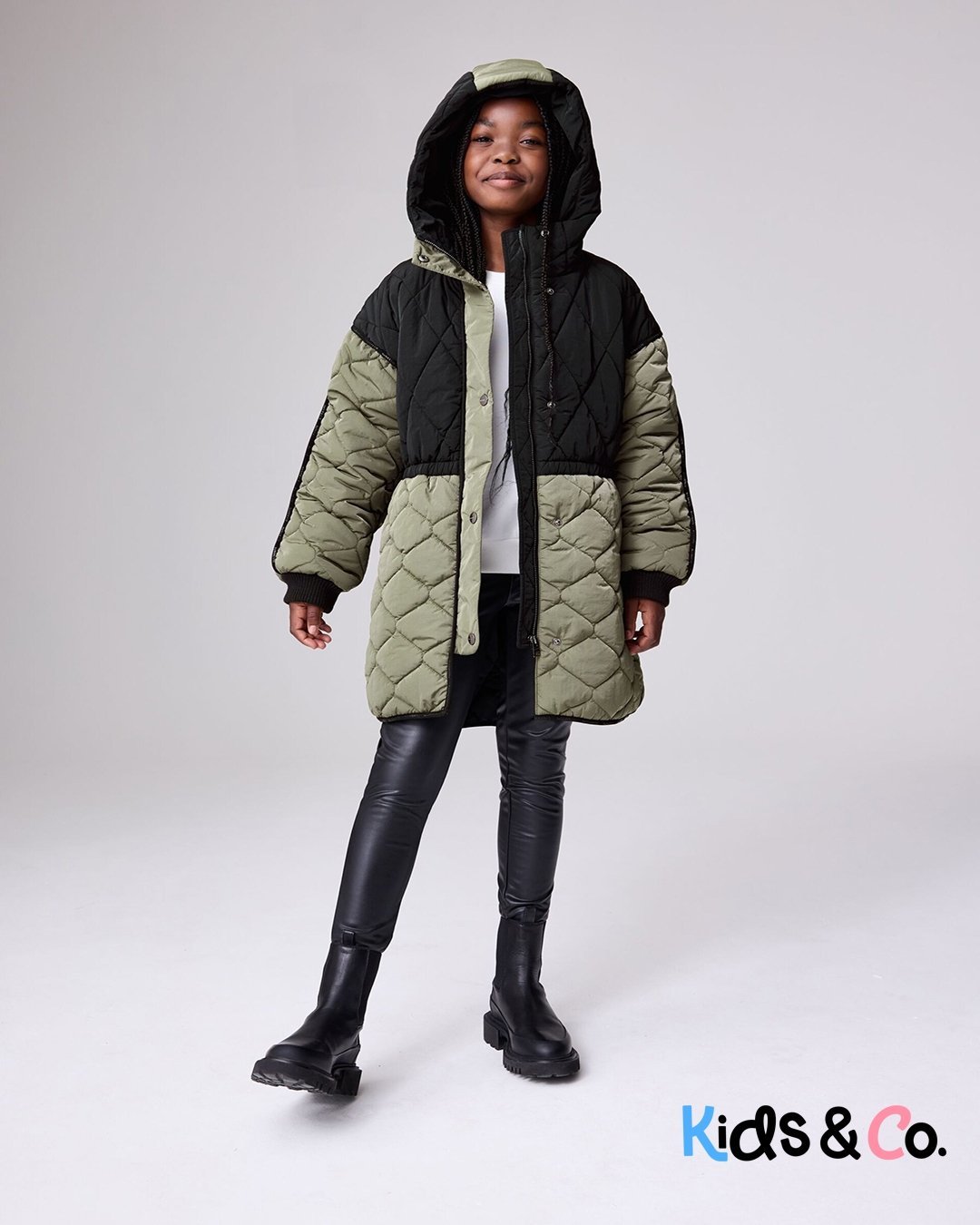 smALLSAINTS Black/Green Longline Quilted Jacket