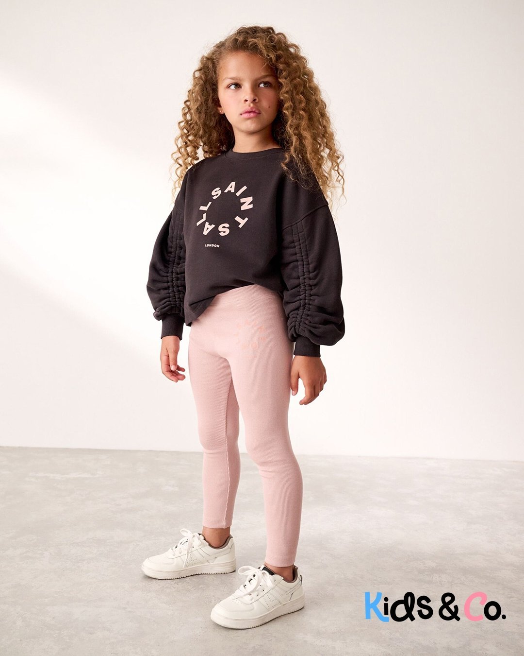 smALLSAINTS Brown/Pink Oversized Tierra Ruched Sleeve Sweatshirt and Ribbed Leggings Set