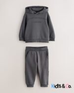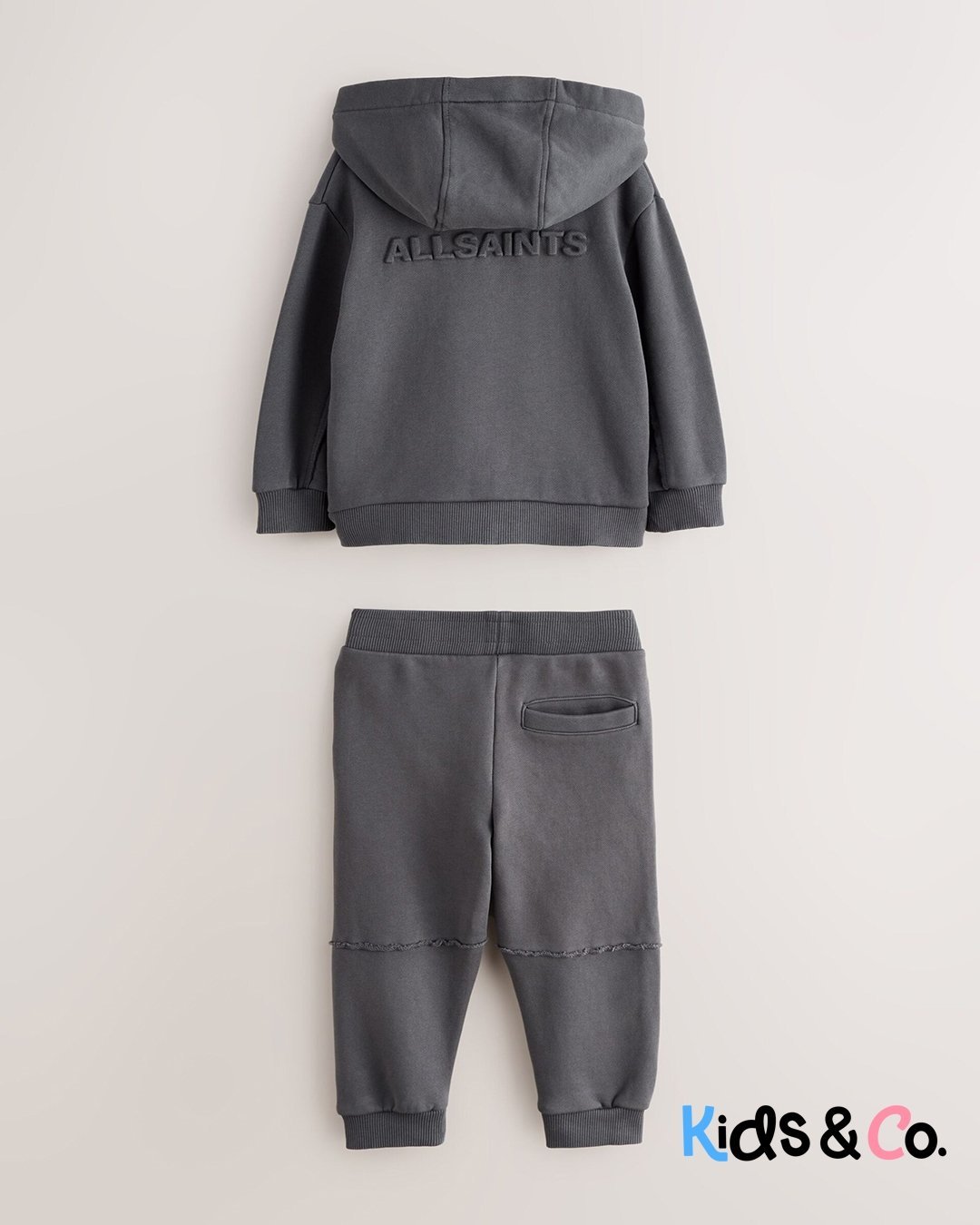 smALLSAINTS Charcoal Grey Embossed Logo Washed Hoodie and Joggers Younger Boys Set