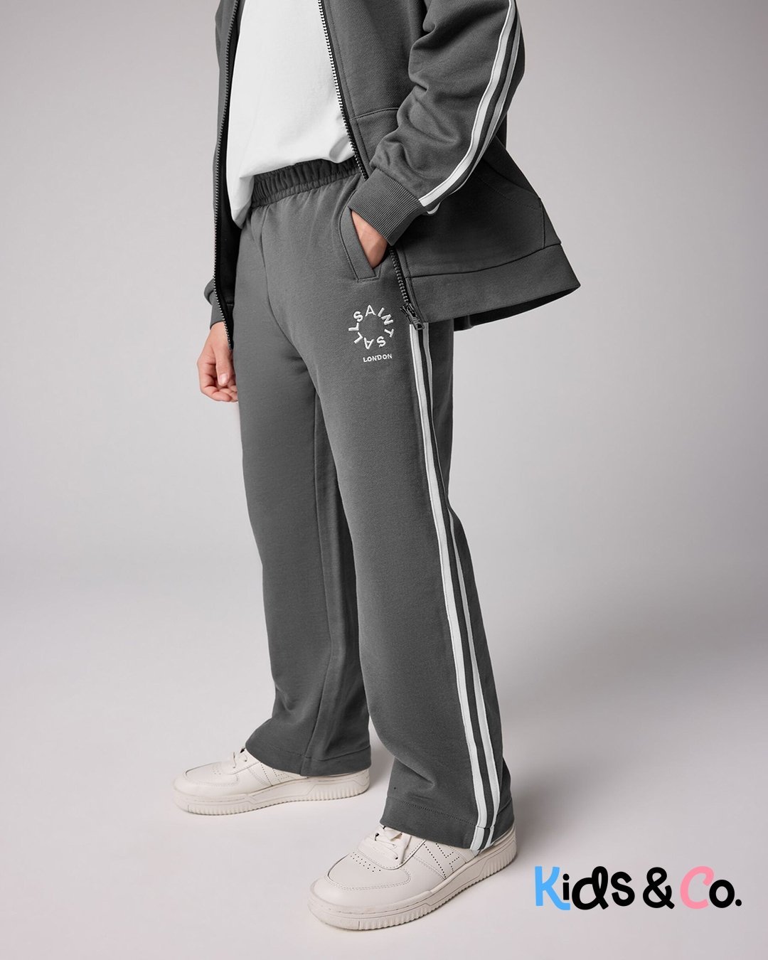 smALLSAINTS Charcoal Grey Tierra Logo Wide Leg 100% Cotton Joggers