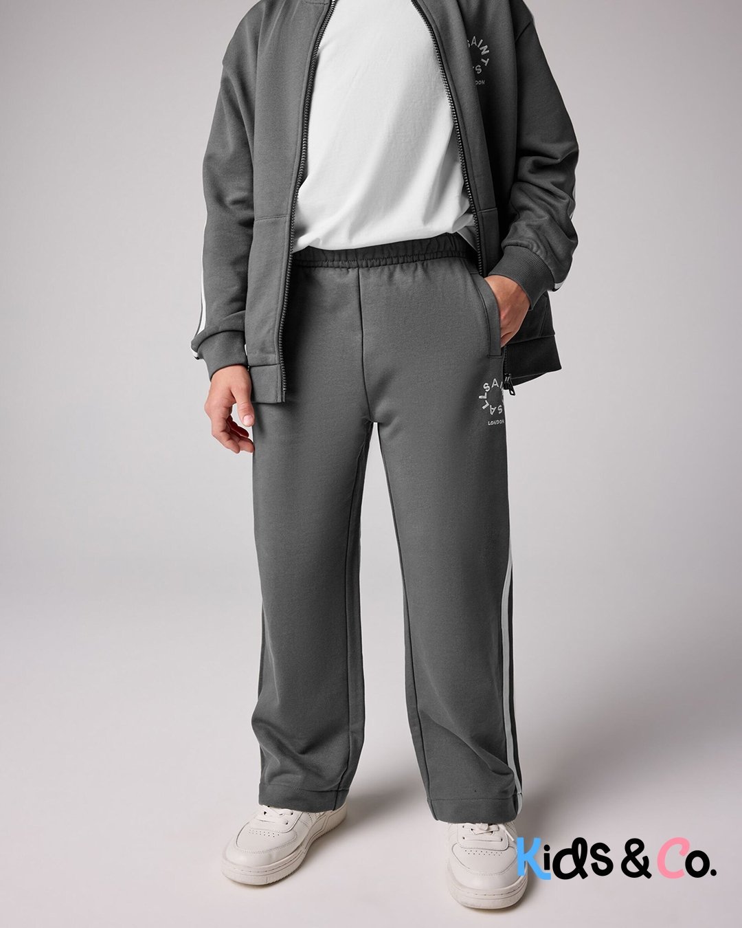 Offering a laidback look the Tierra joggers from smALLSAINTS come in a loose fit, wide leg silhouette. Crafted from a soft cotton jersey, these comfortable joggers also boast an elasticated waist and side tape detailing to the legs. They are finished with an embroidered AllSaints Tierra logo to the front. Wide leg Loose fit Elasticated waist AllSaints Tierra logo on front Stripe tape detailing Machine washable. 100% Cotton.