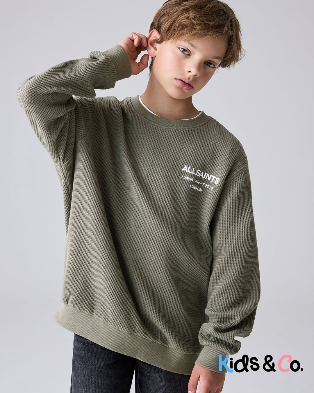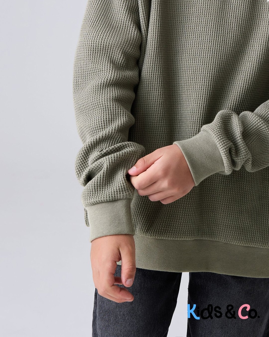 Home Boys smALLSAINTS Khaki/Green Underground Oversized Crew Waffle Sweatshirt