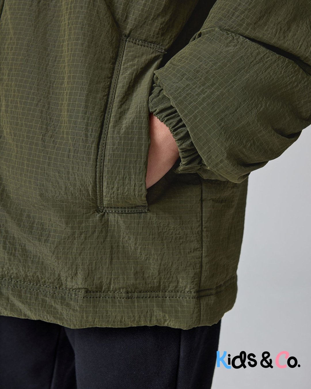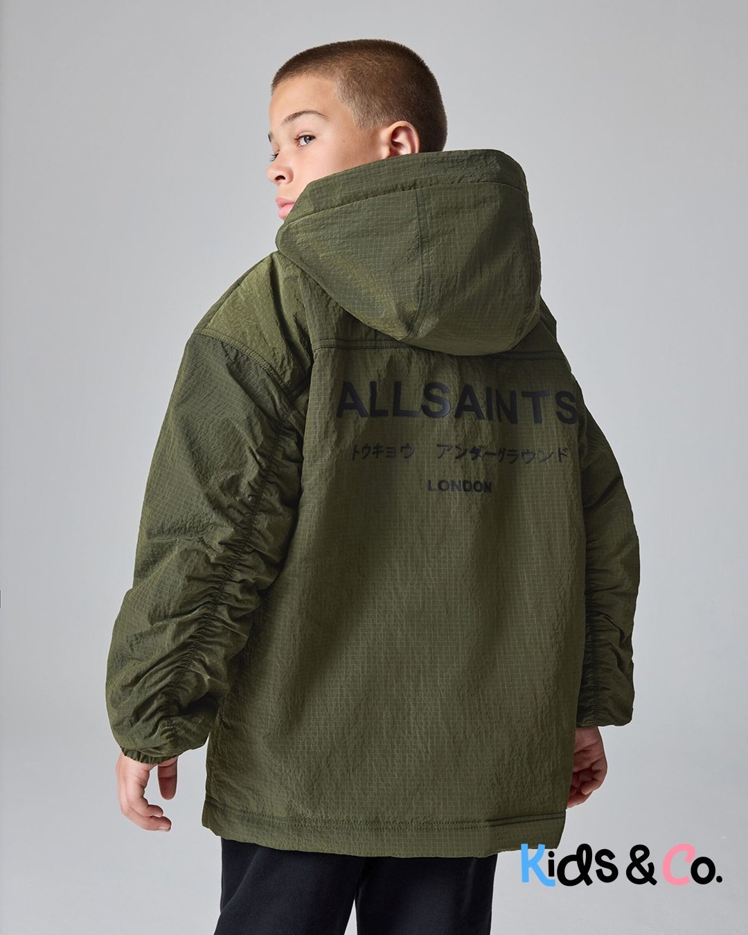 Get him ready for any adventure with the smALLSAINTS Khaki Green Underground Ripstop Jacket. This lightweight jacket, crafted from durable ripstop fabric, is perfect for unpredictable weather. It features a convenient zip and popper closure to keep him secure, while the hooded design offers extra protection. He’ll find plenty of storage with two side pockets, one chest pocket, and one internal pocket. The unique ruched detail on the sleeve adds a touch of style, and the iconic AllSaints Underground logo is prominently displayed on both the front and back, making a bold statement. Lightweight Ripstop fabric Ruched detail to sleeve AllSaints Underground logo Machine washable. Shell 100% Nylon. Body Lining 100% Polyester. Hood Lining 100% Polyester. Wadding 100% Polyester.
