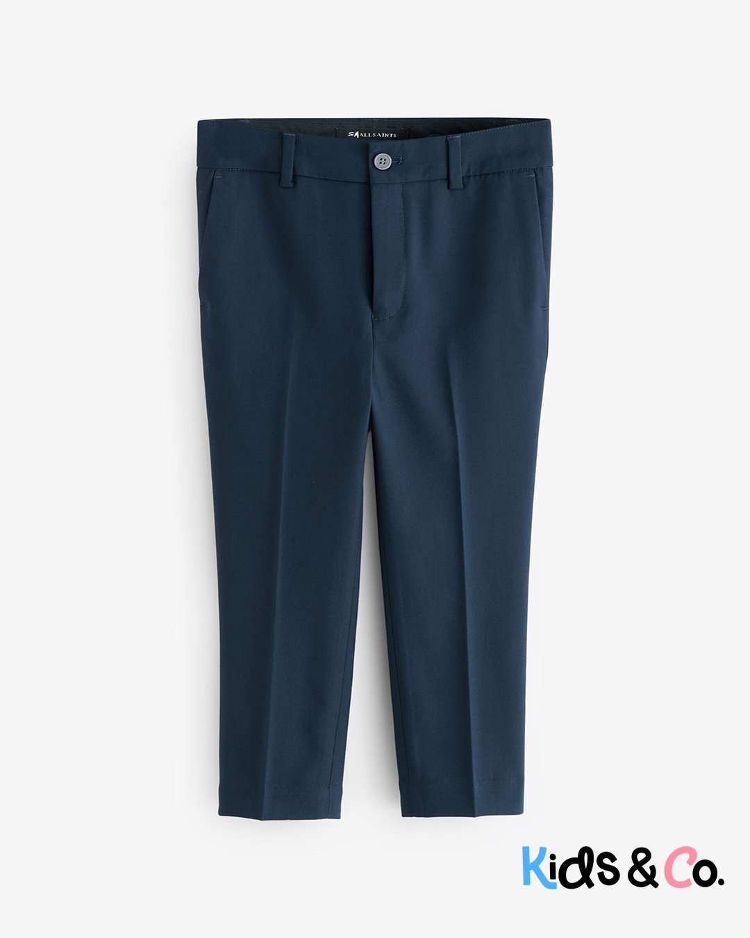 Add a touch of flair to his formalwear with the Moad suit trousers from smALLSAINTS. These slim fit suit trousers are designed with a smart front crease, zip and button closure and belt loops. They are finely finished with side pockets and AllSaints branded trims. For a top to toe smart style, team with the matching jacket. Slim-fit Zip and button closure Two side pockets AllSaints branded trims Matching jacket available Machine washable. 68% Polyester, 30% Viscose, 2% Elastane.