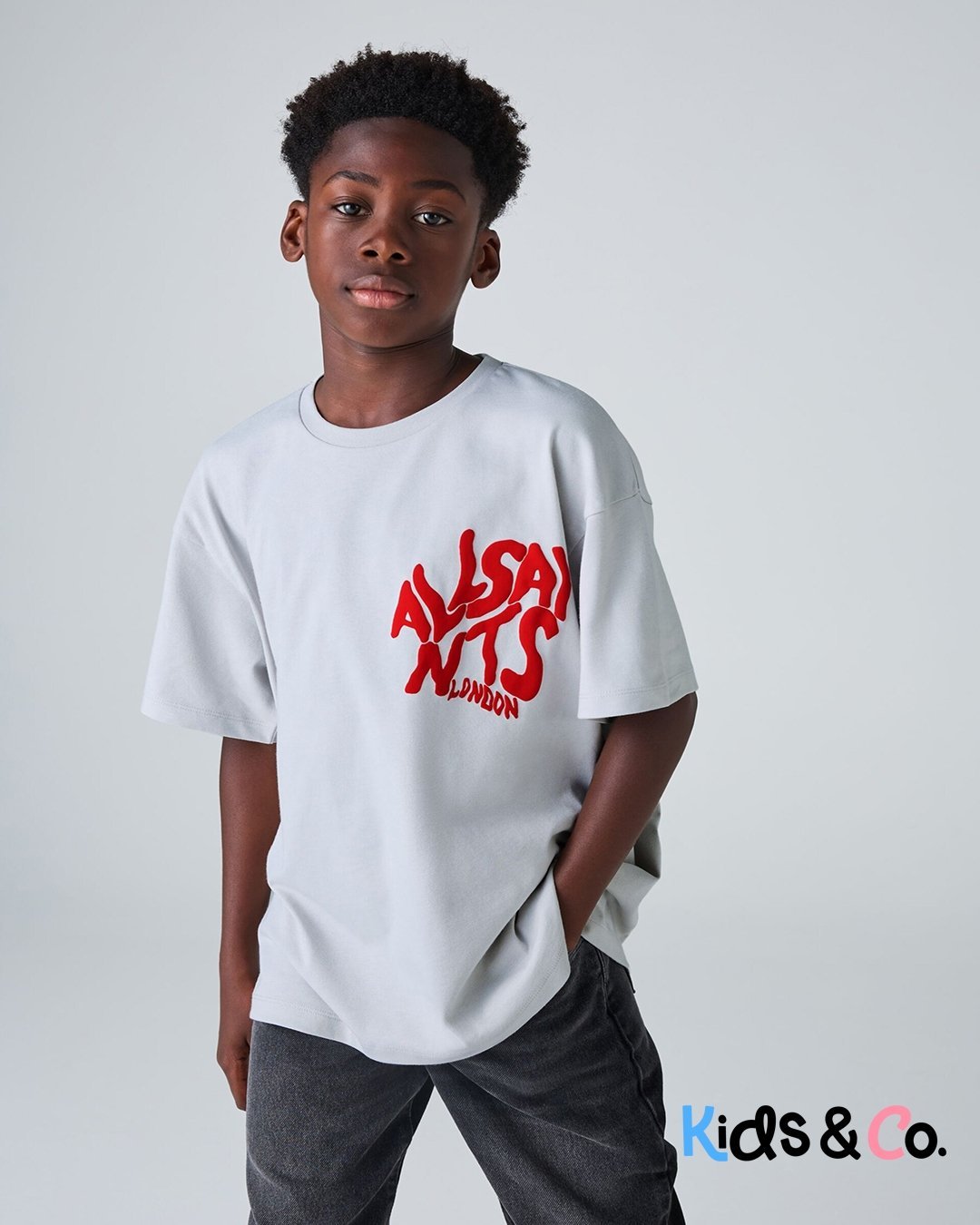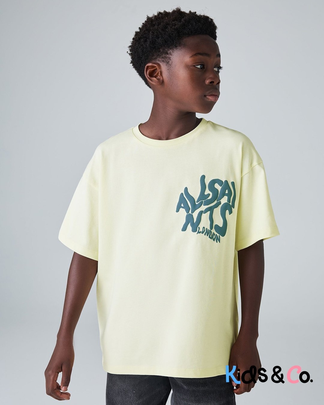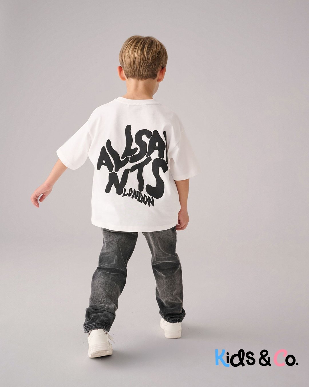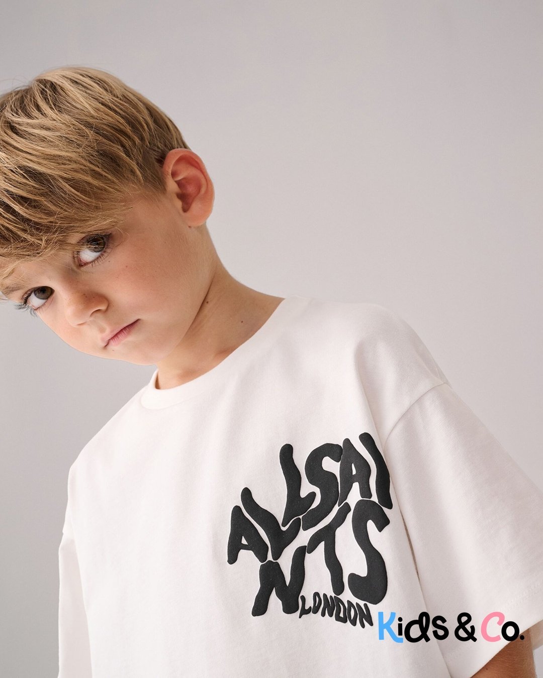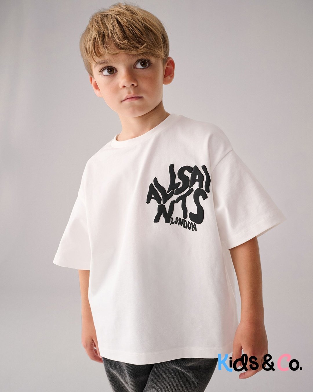 An everyday essential, the Orlando Logo t-shirt from smALLSAINTS will be a versatile addition to his wardrobe. Crafted from soft cotton in white with a crew neck and designed for an oversized fit, this stylish staple is finished with the iconic AllSaints logo in bold bubble letters printed on the chest with a puffed printed texture. AllSaints bubble letter logo Crew neck Oversized fit 100% cotton Machine washable. Main 100% Cotton. Neck 97% Cotton, 3% Elastane.