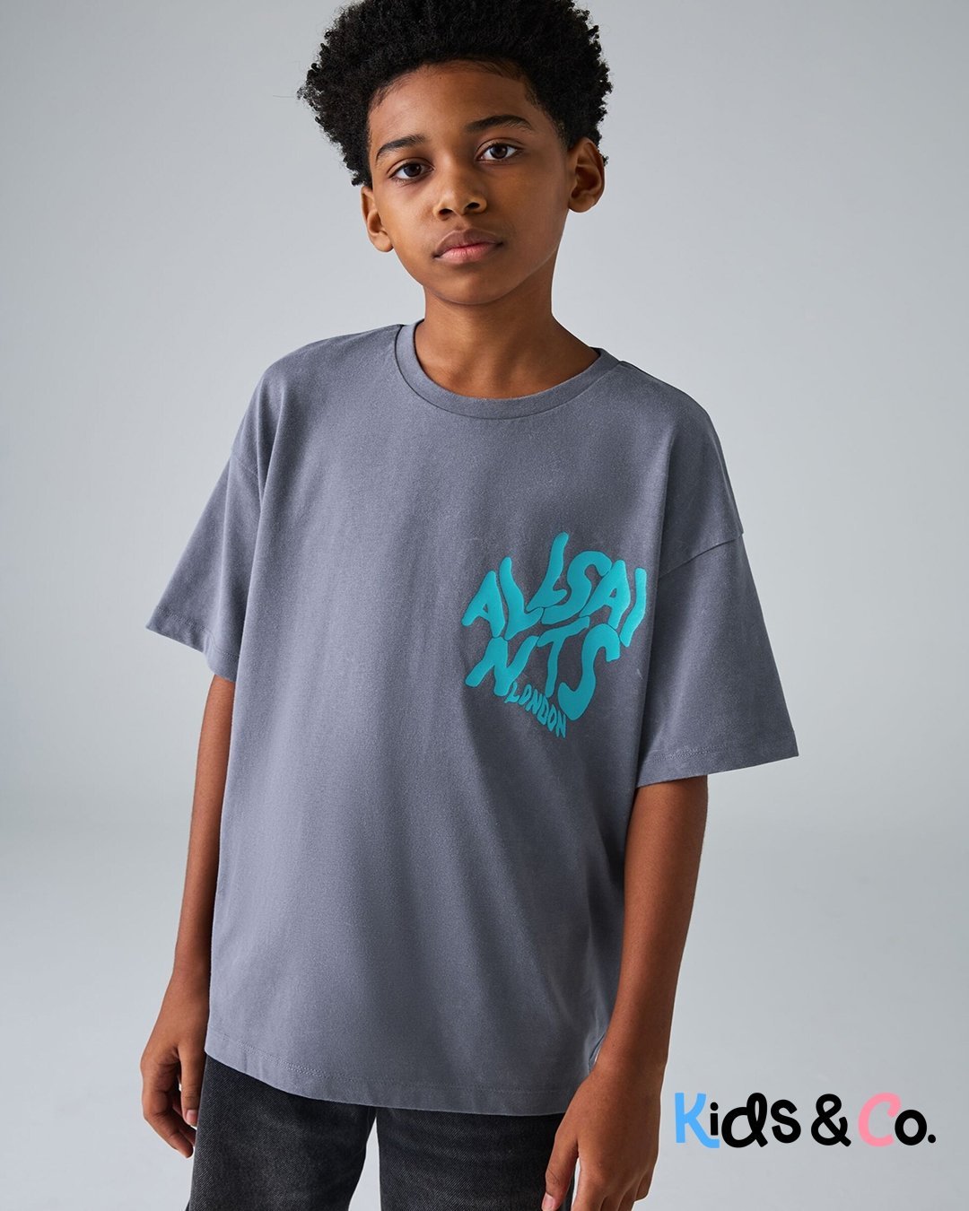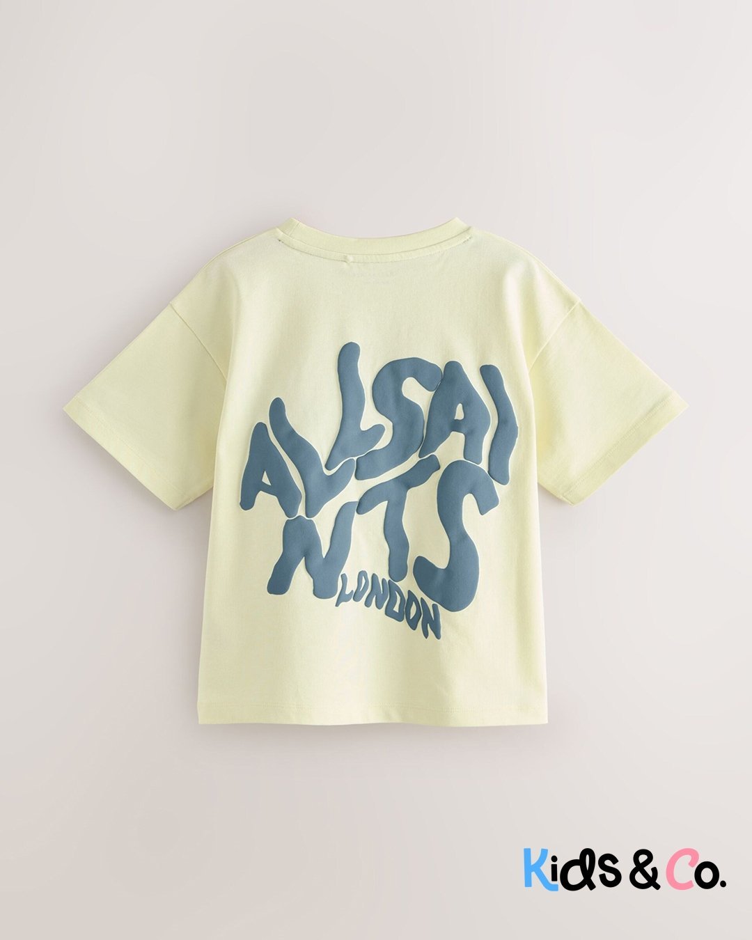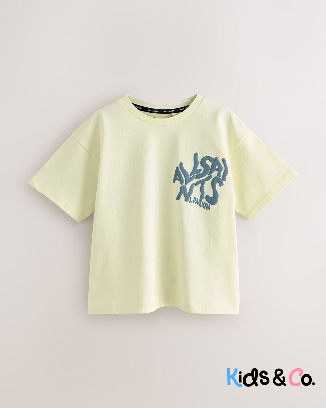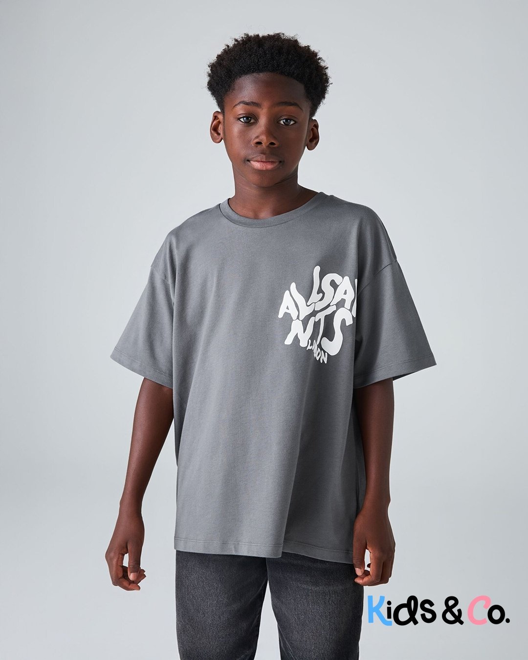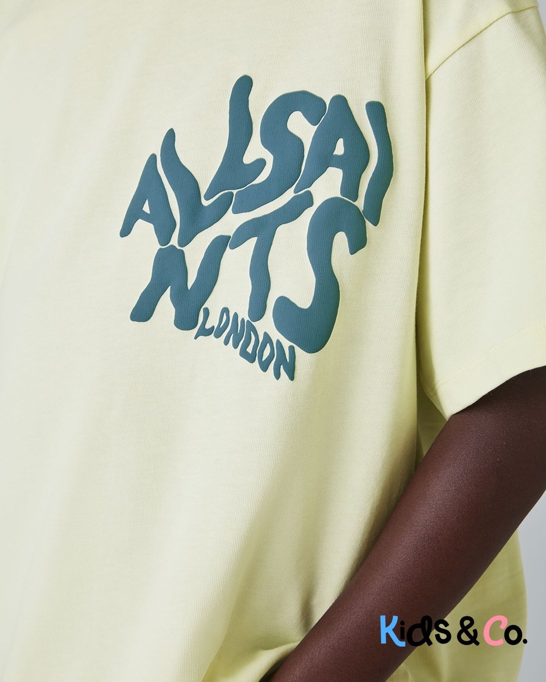 An everyday essential, the Orlando Logo t-shirt from smALLSAINTS will be a versatile addition to his wardrobe. Crafted from soft cotton in white with a crew neck and designed for an oversized fit, this stylish staple is finished with the iconic AllSaints logo in bold bubble letters printed on the chest with a puffed printed texture. AllSaints bubble letter logo Crew neck Oversized fit 100% cotton Machine washable. Main 100% Cotton. Neck 97% Cotton, 3% Elastane.