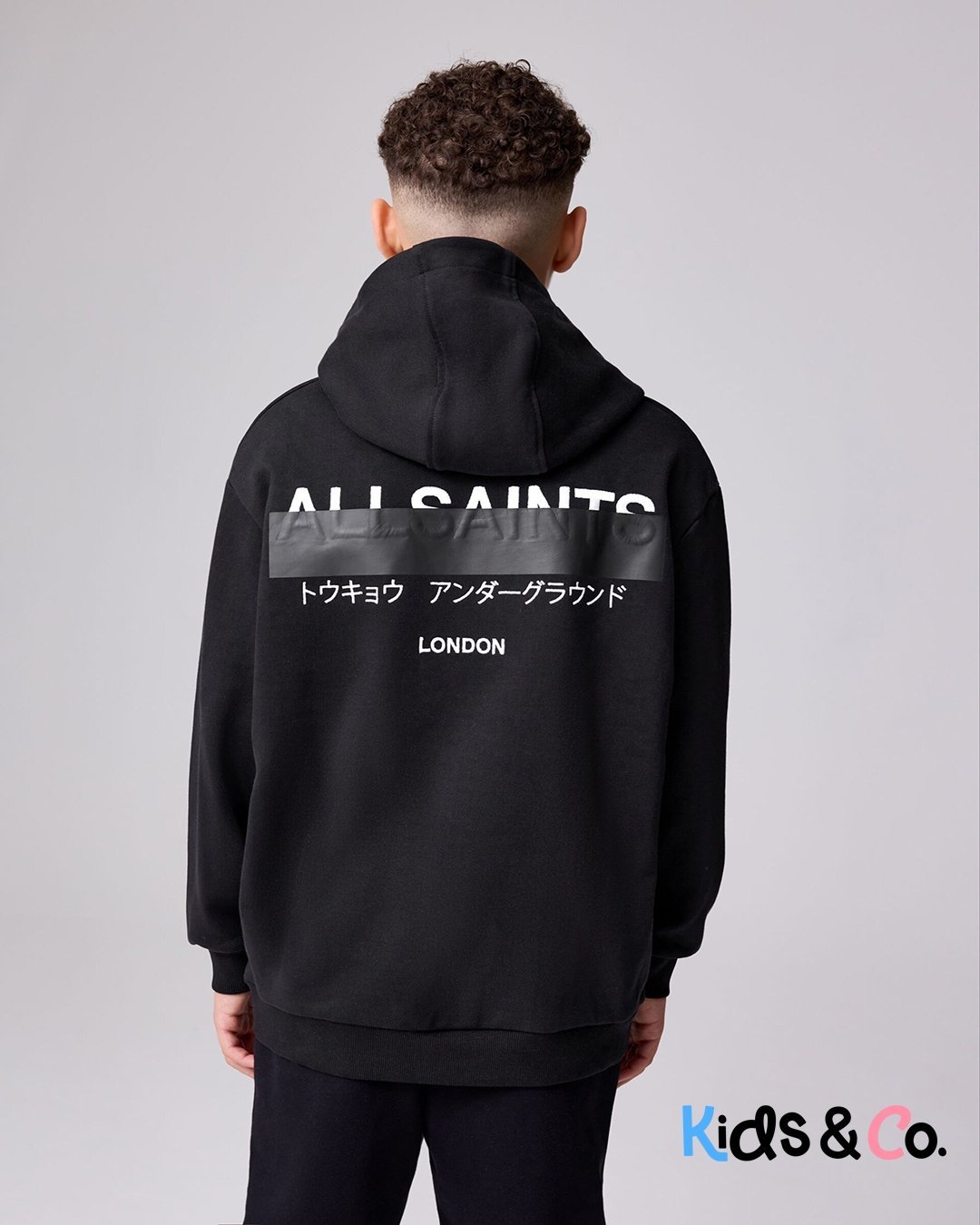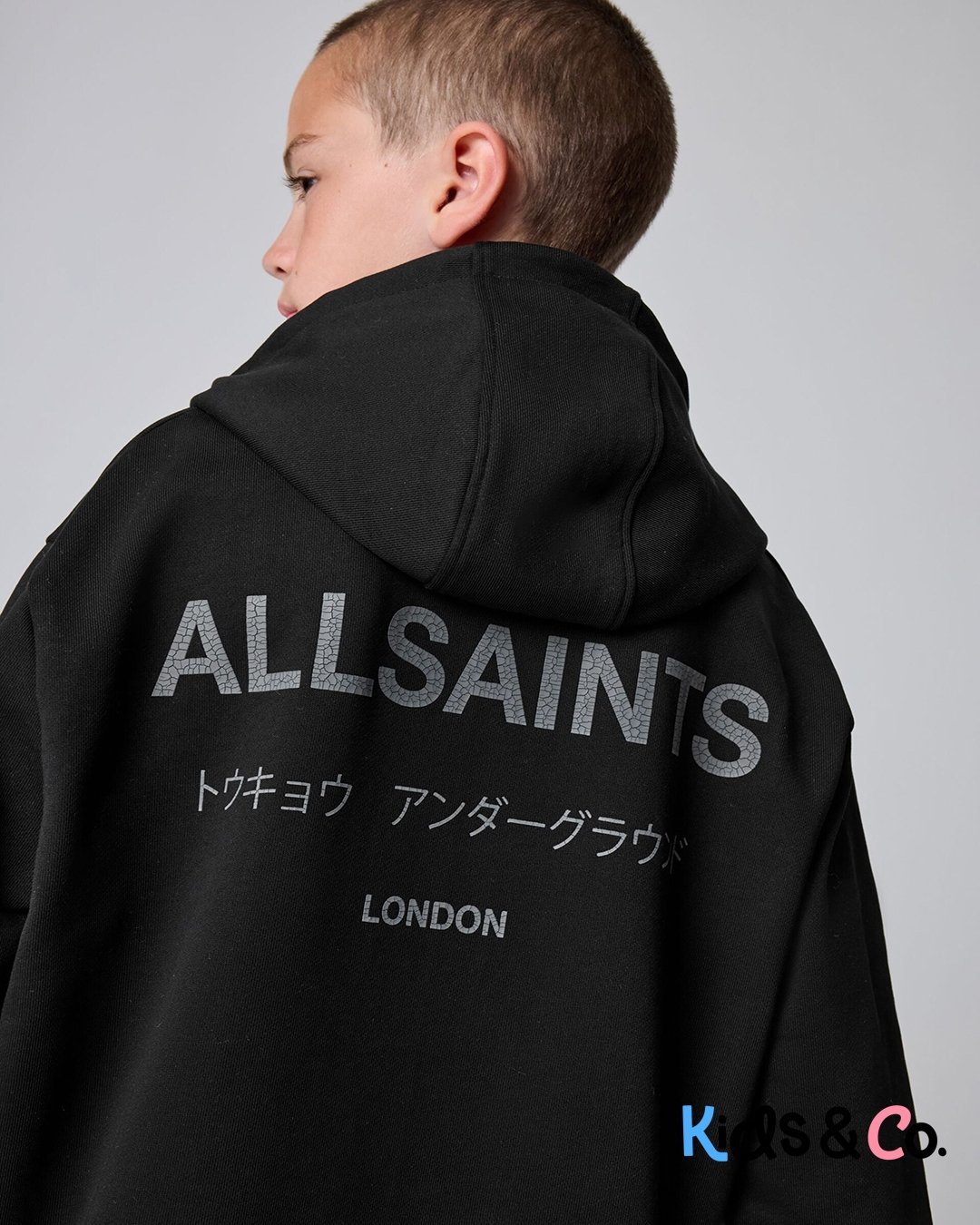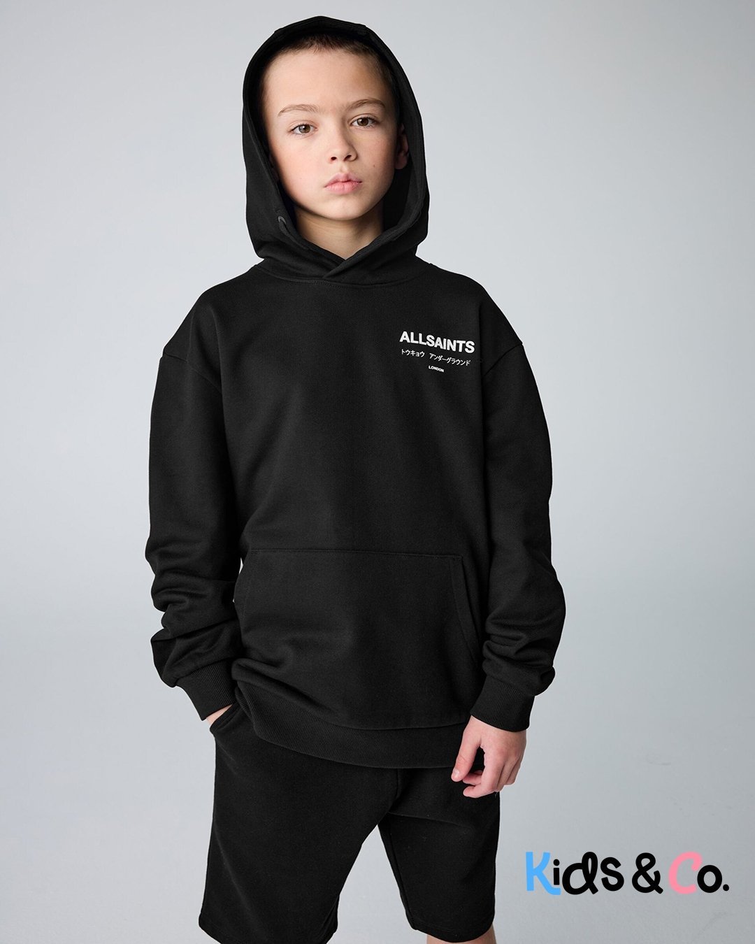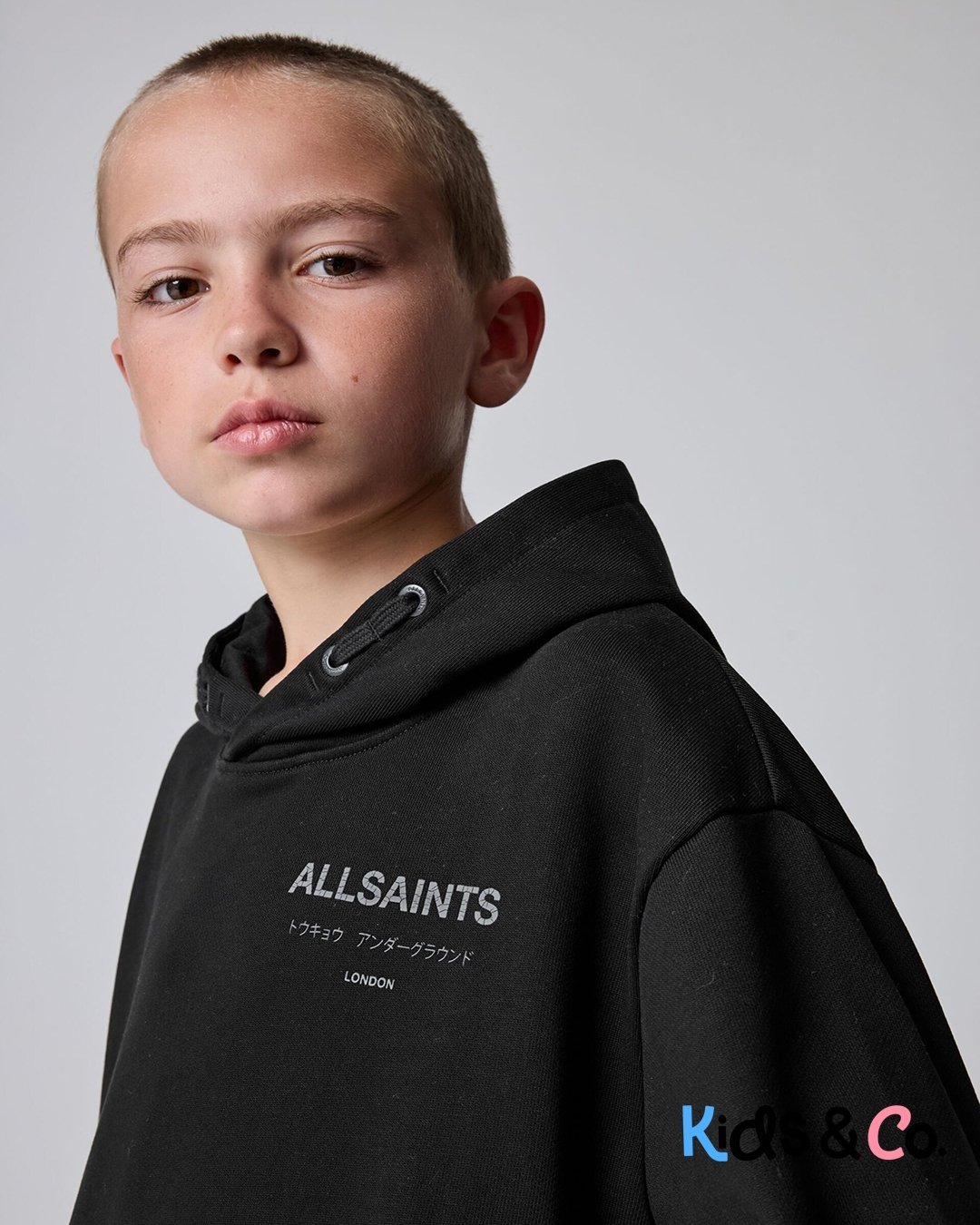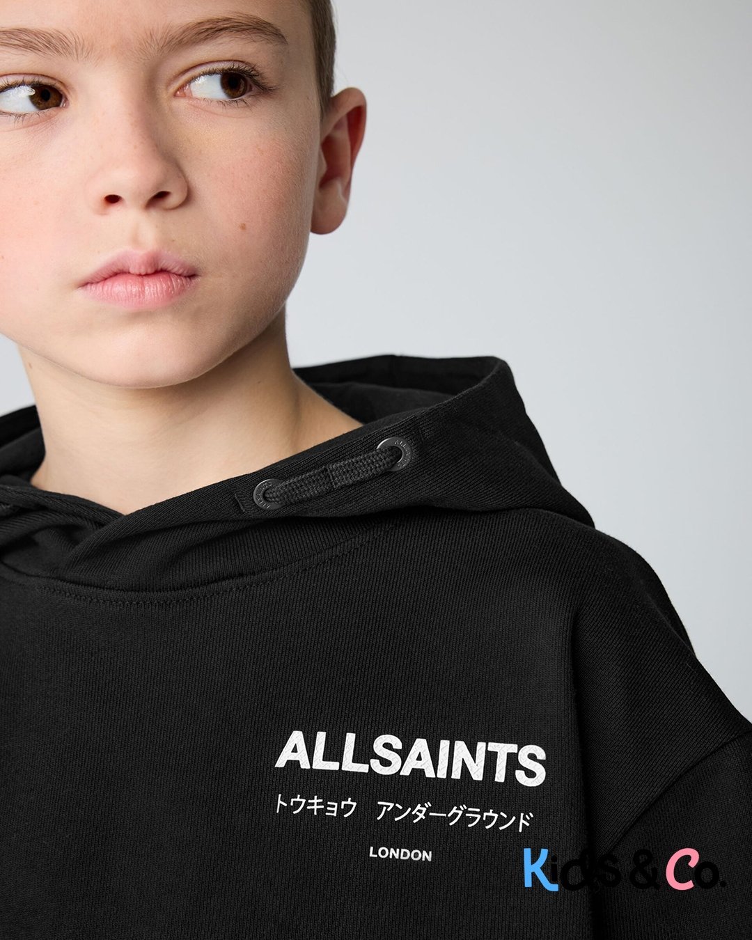 Keep them wrapped up in style with this smALLSAINTS Underground hoodie. A unisex design that delivers an oversized fit, this classic jumper made from soft cotton also has a kangaroo pocket on the front with the iconic AllSaints signature logo on the chest and back. Hooded Oversized fit 100% Cotton Unisex design Machine washable. Main 100% Cotton. Cuffs 95% Cotton, 5% Elastane.