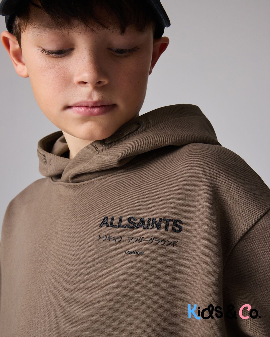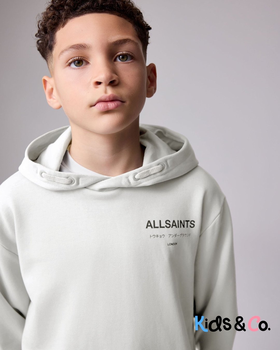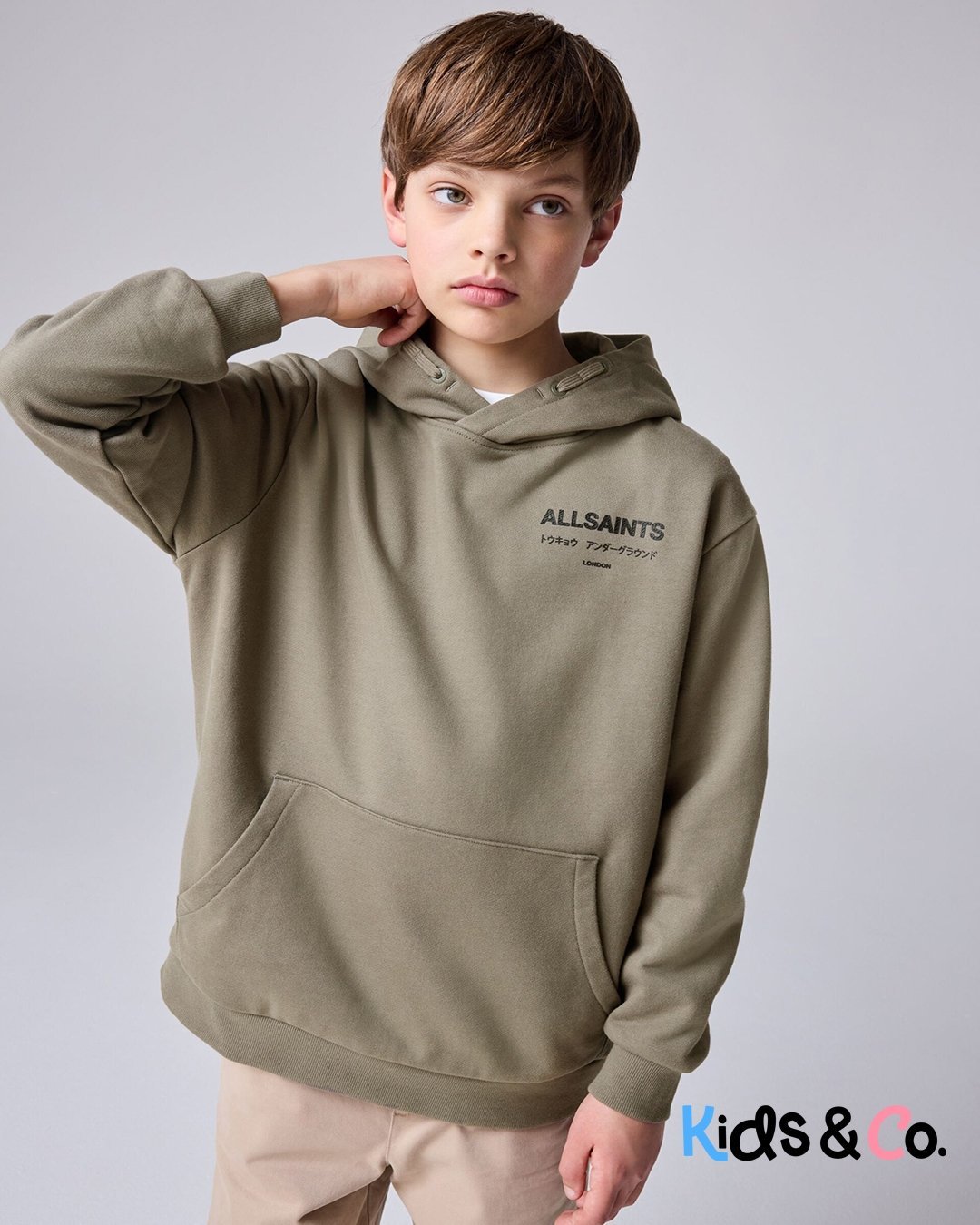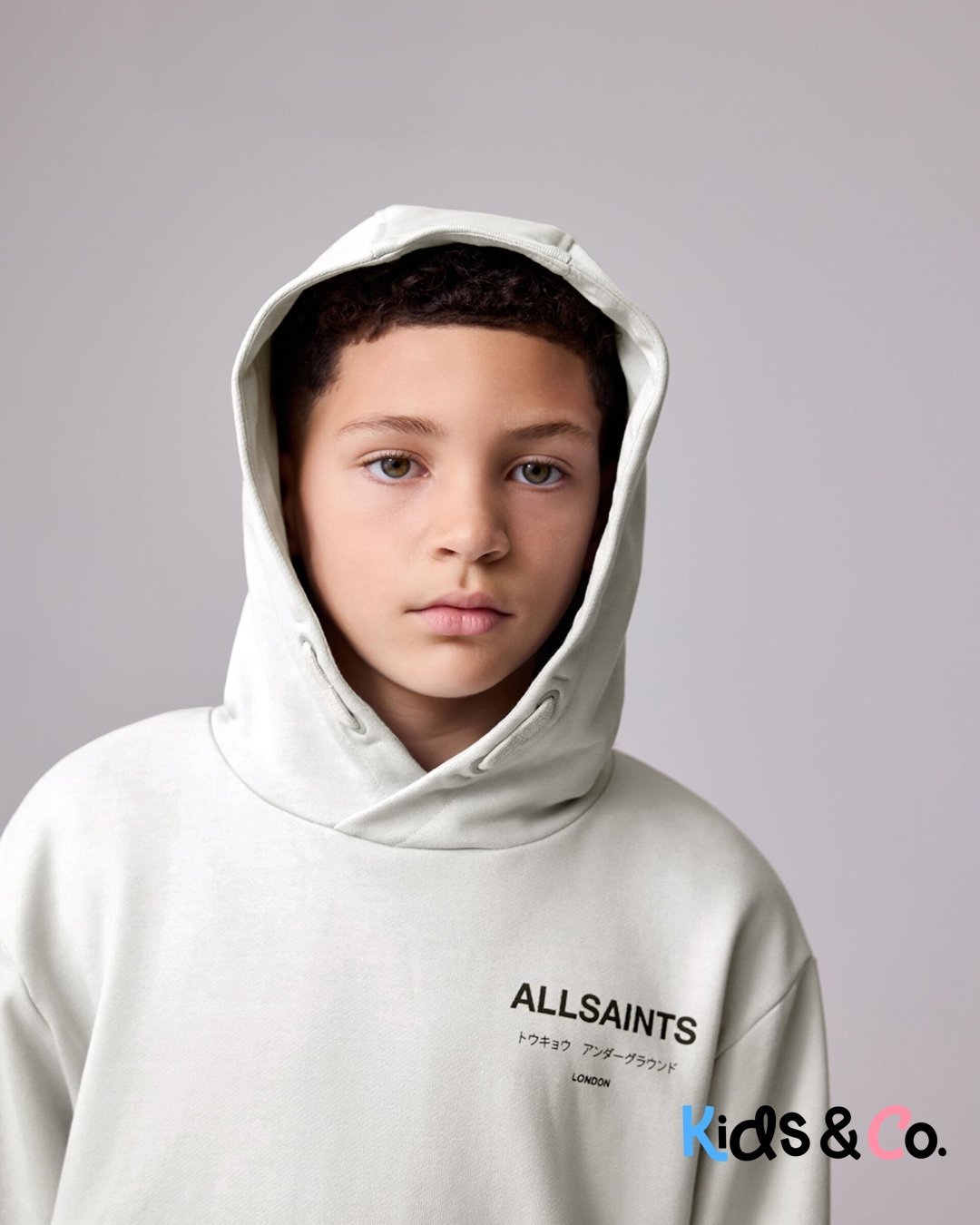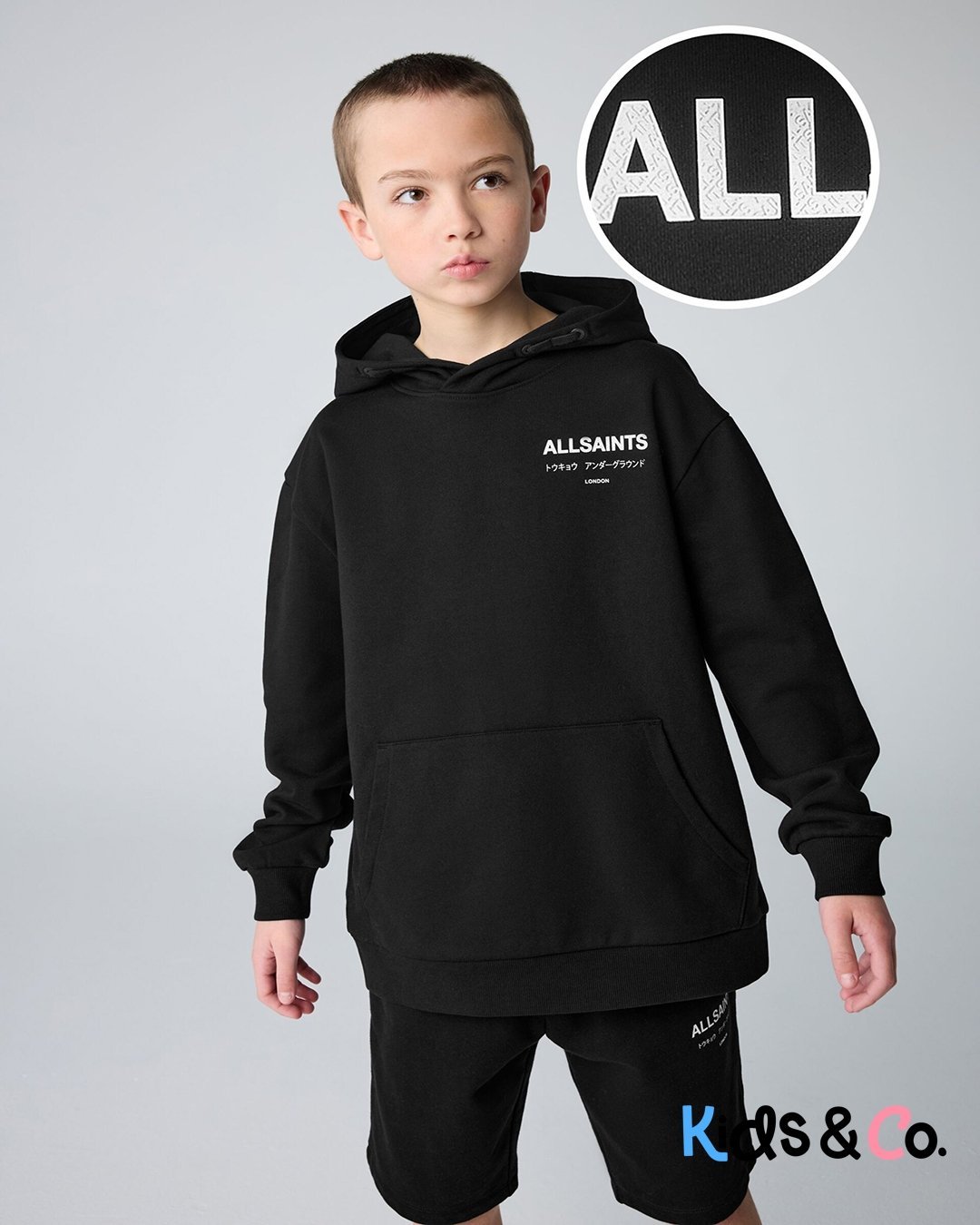 Keep them wrapped up in style with this smALLSAINTS Underground hoodie. A unisex design that delivers an oversized fit, this classic jumper made from soft cotton also has a kangaroo pocket on the front with the iconic AllSaints signature logo on the chest and back. Hooded Oversized fit 100% Cotton Unisex design Machine washable. Main 100% Cotton. Cuffs 95% Cotton, 5% Elastane.