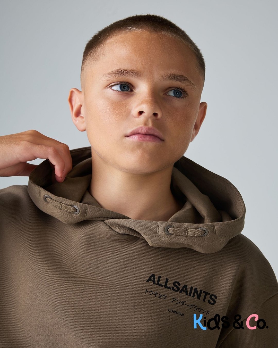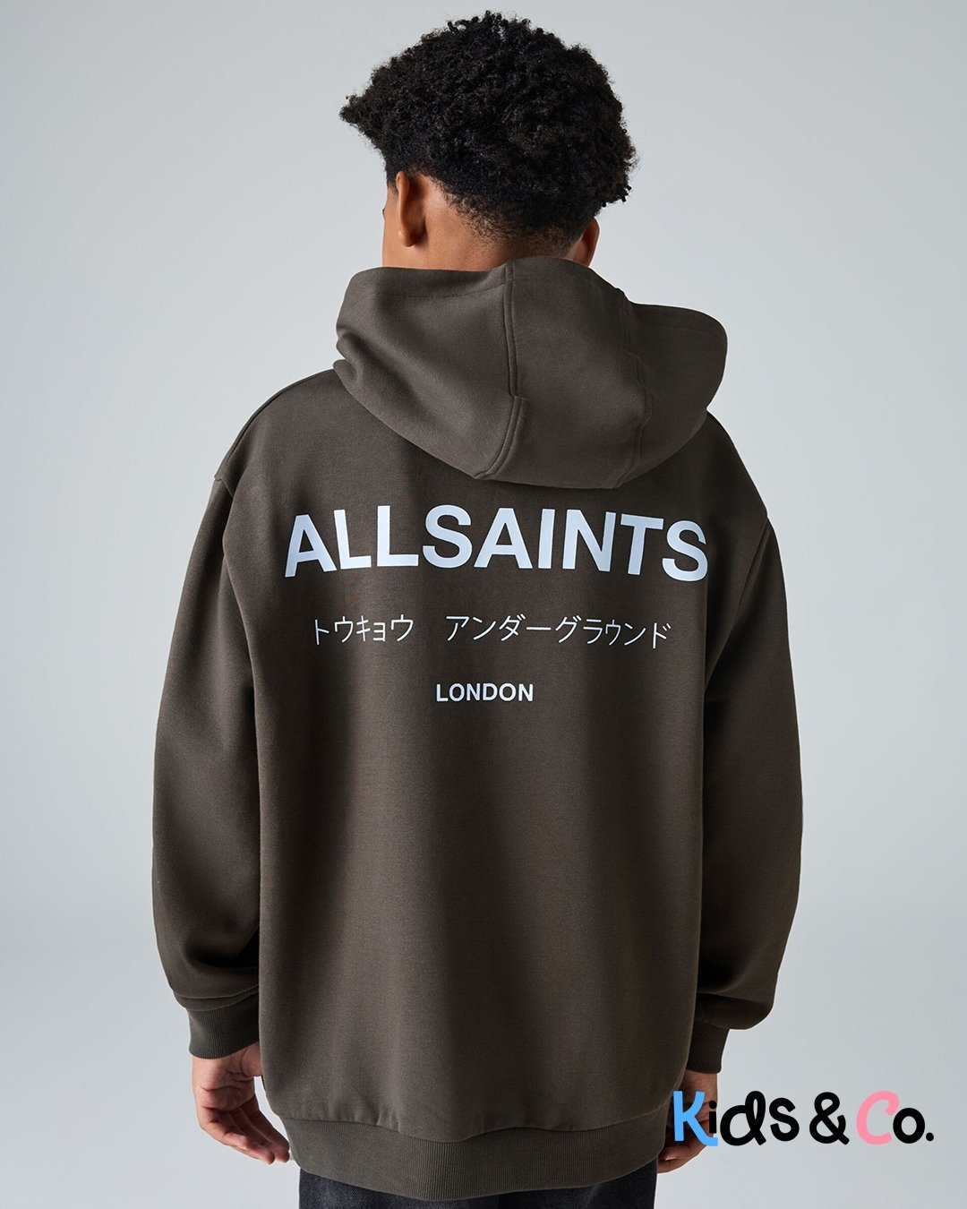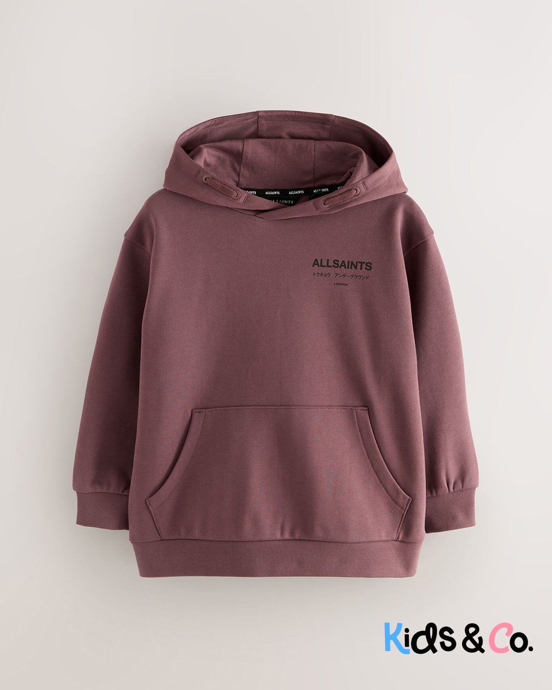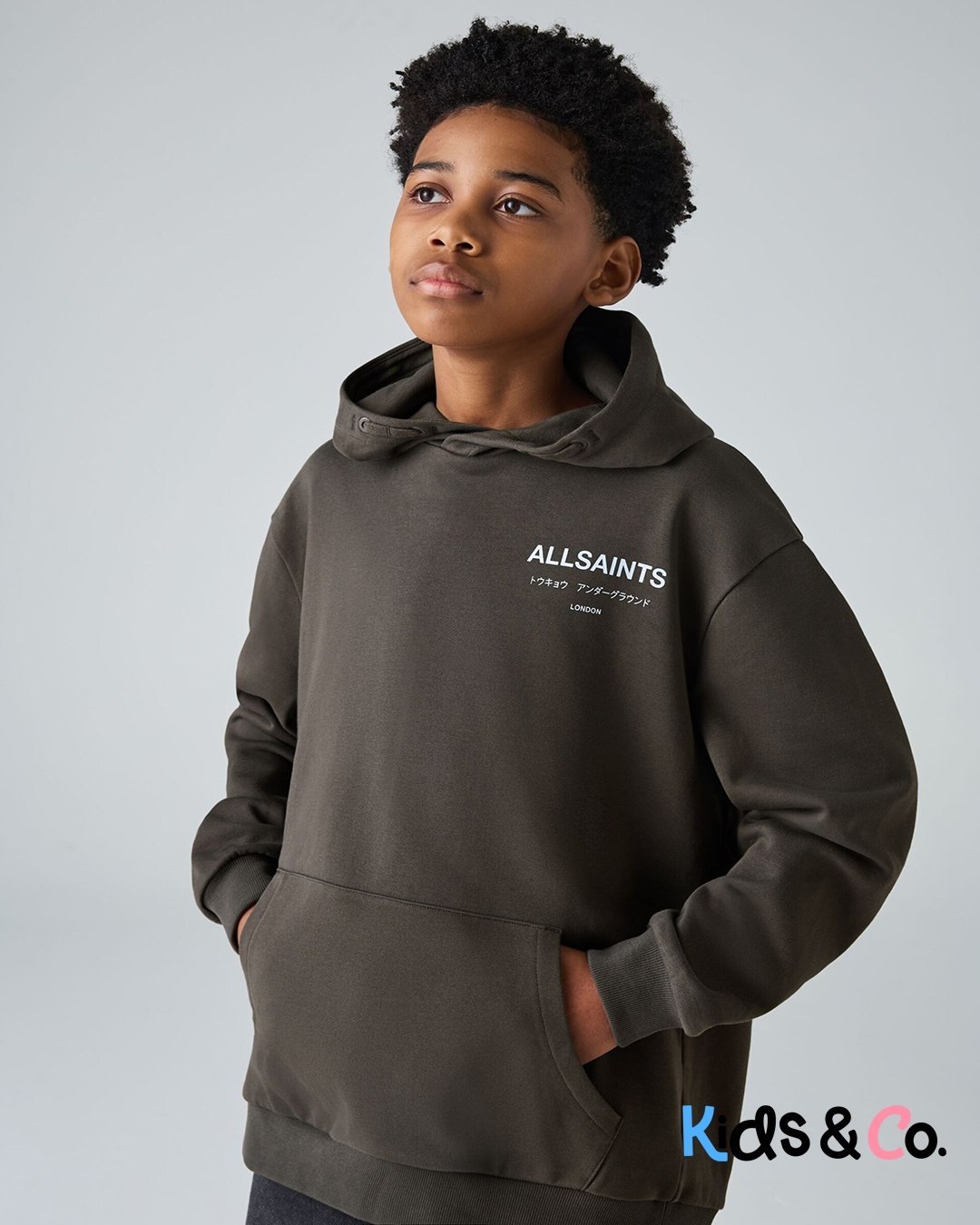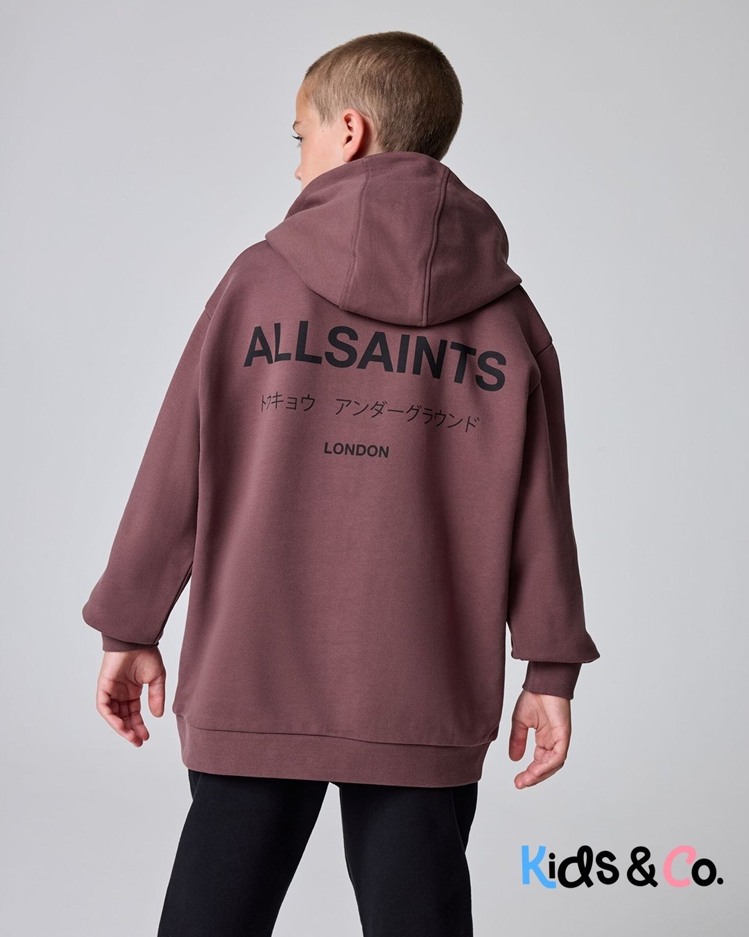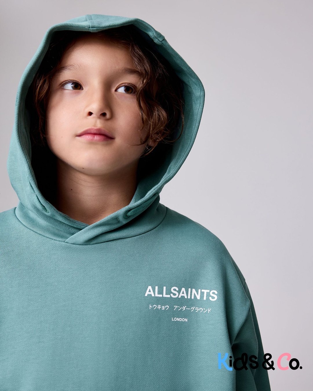 Keep them wrapped up in style with this smALLSAINTS Underground hoodie. A unisex design that delivers an oversized fit, this classic jumper made from soft cotton also has a kangaroo pocket on the front with the iconic AllSaints signature logo on the chest and back. Hooded Oversized fit 100% Cotton Unisex design Machine washable. Main 100% Cotton. Cuffs 95% Cotton, 5% Elastane.